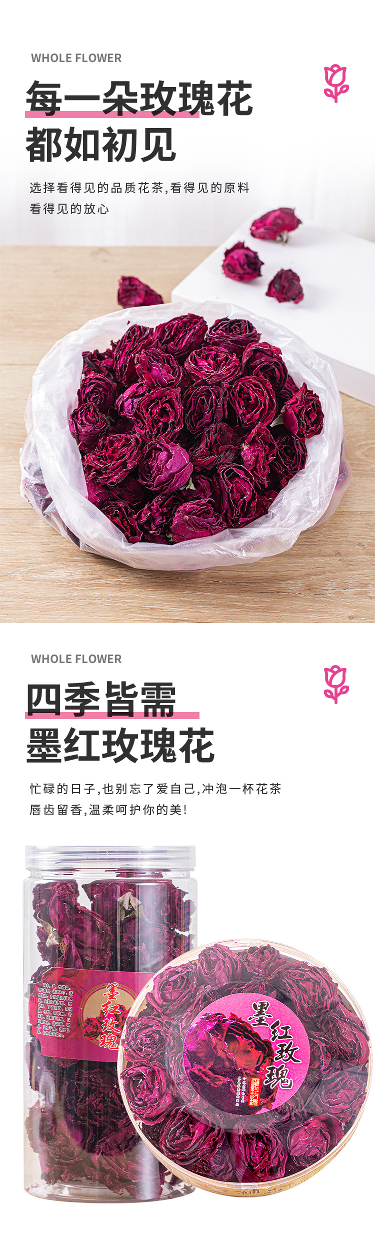 墨红玫瑰花茶水果茶云南产地供应食用干花整朵花冠大朵可定制