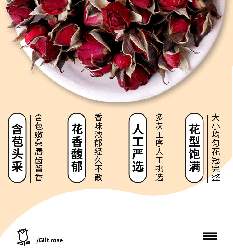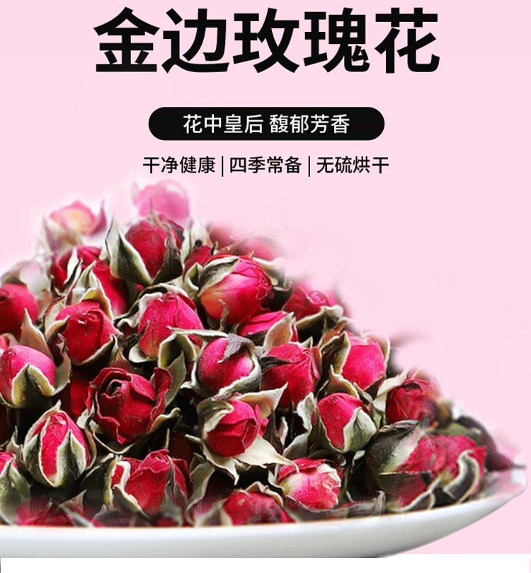 金边玫瑰花茶玫瑰干花泡茶干玫瑰食用金边玫瑰散装现货批发玫瑰花