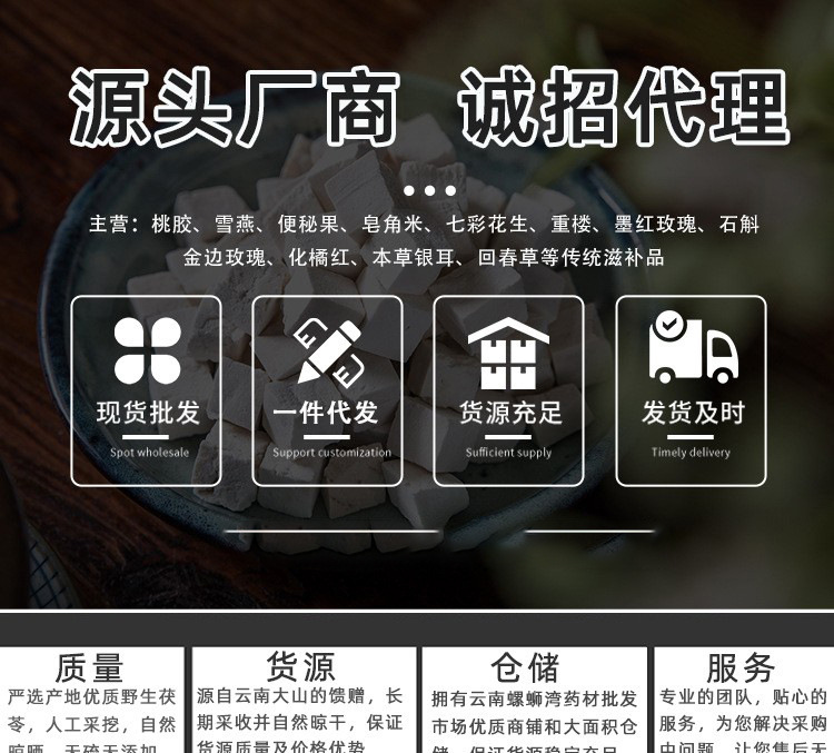 云南茯苓500g白茯苓土伏苓块批发一手货源白茯苓中心丁一刀丁茯苓