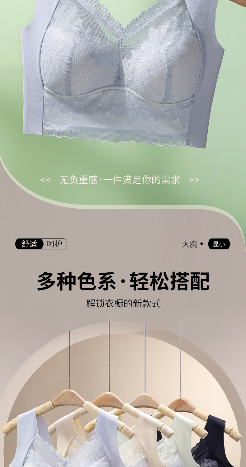 大码蕾丝文胸无痕美背无钢圈固定一体背心式文胸聚拢收副乳防下垂