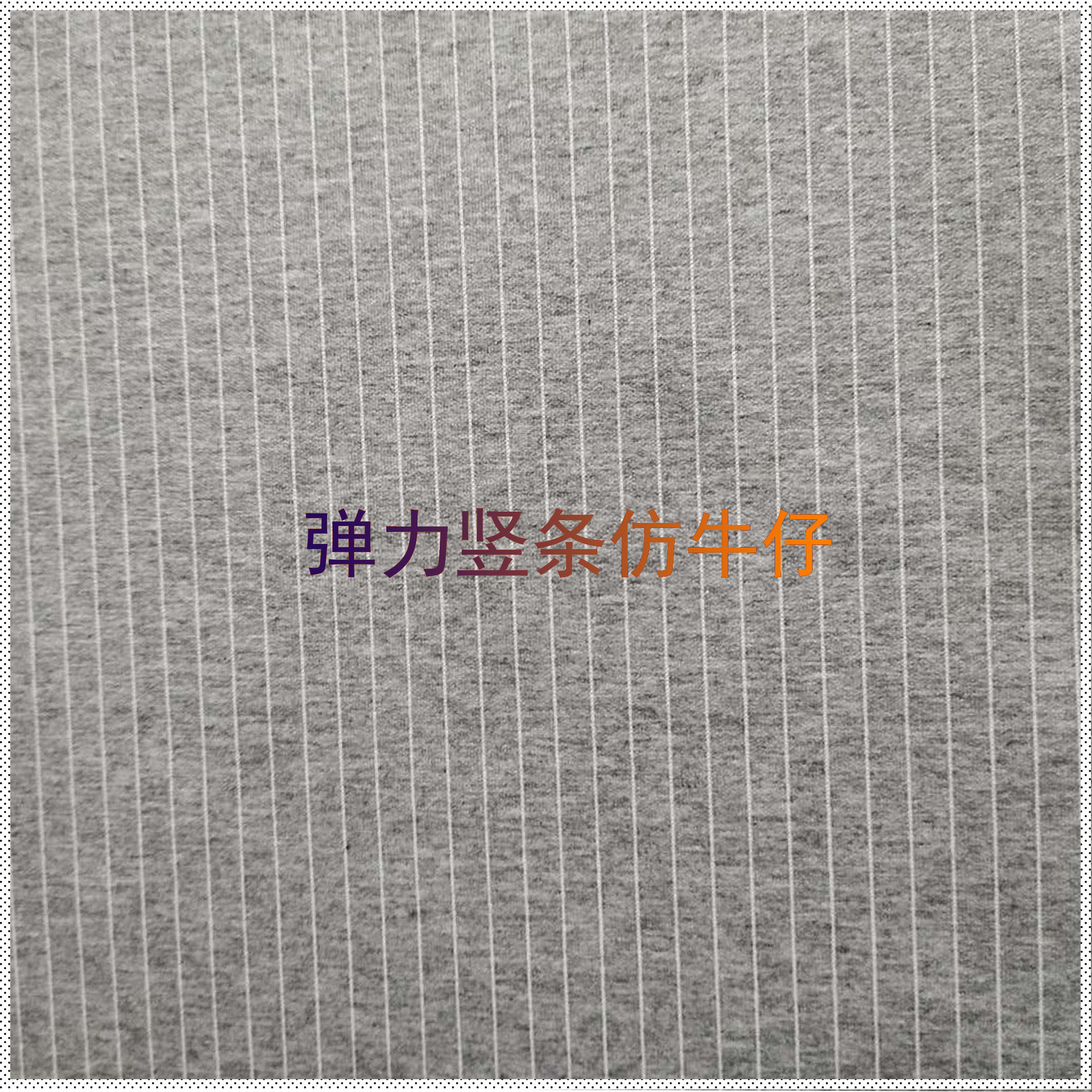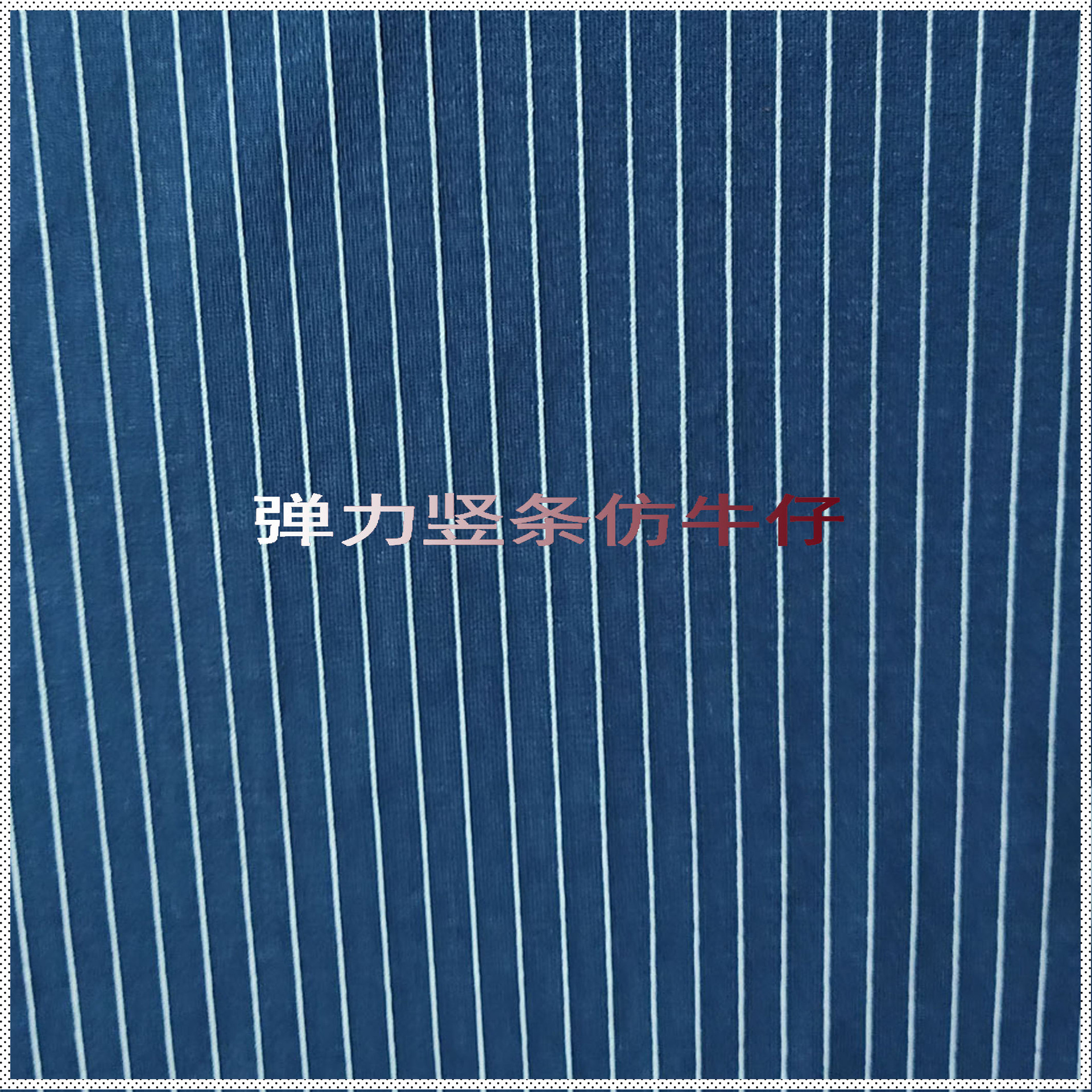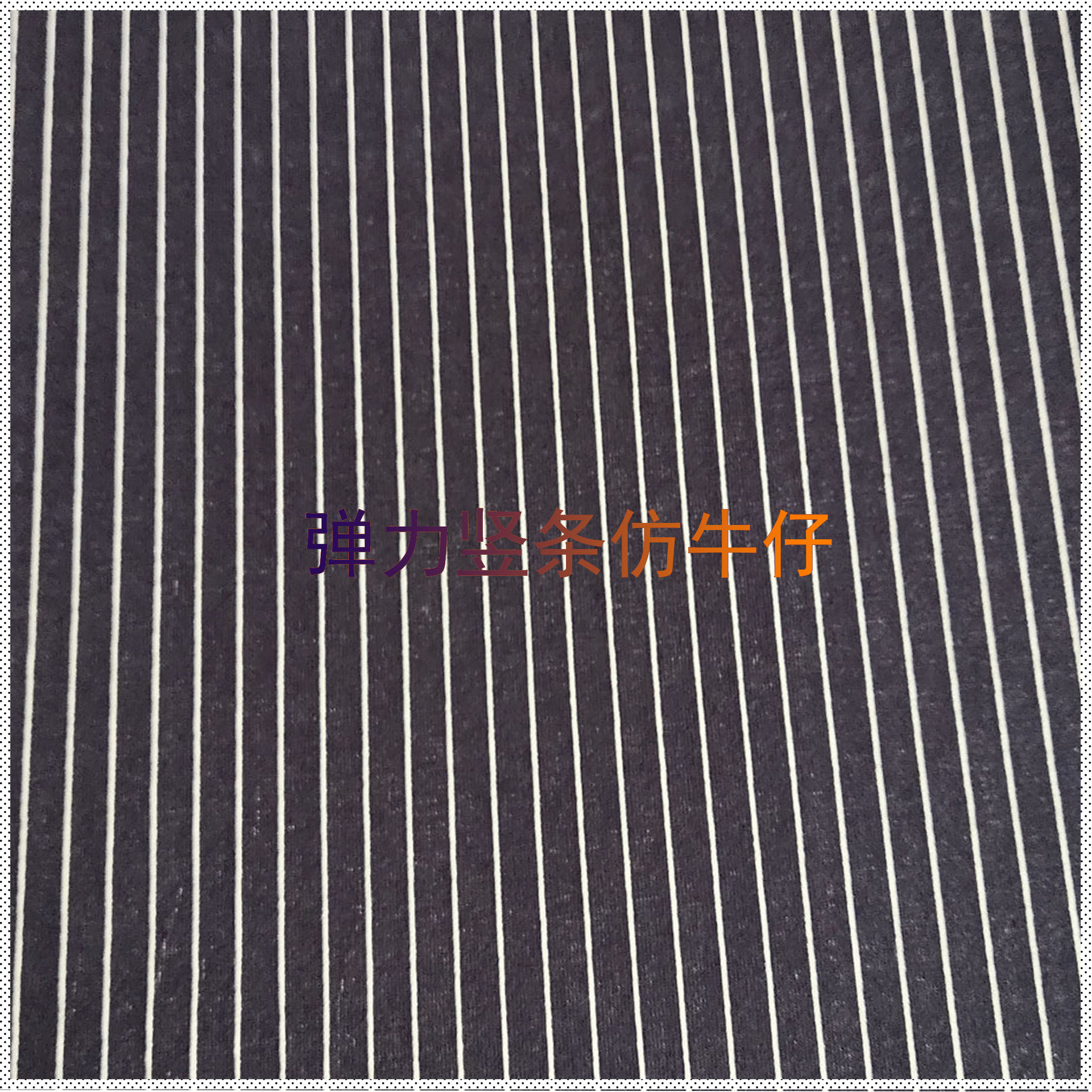 佛山工厂 32S/1棉涤弹力竖条纹针织牛仔布 裤实童装裤色织竖条纹