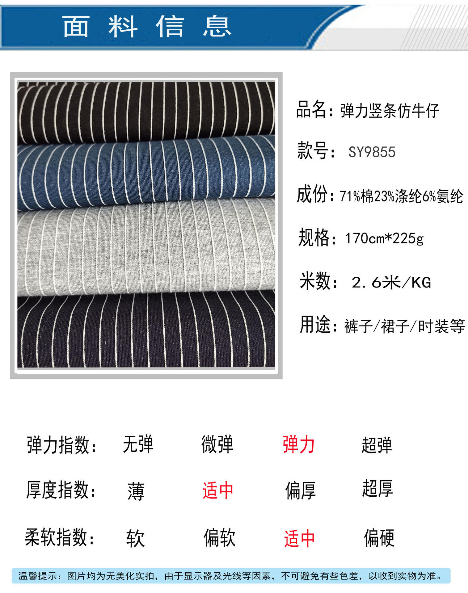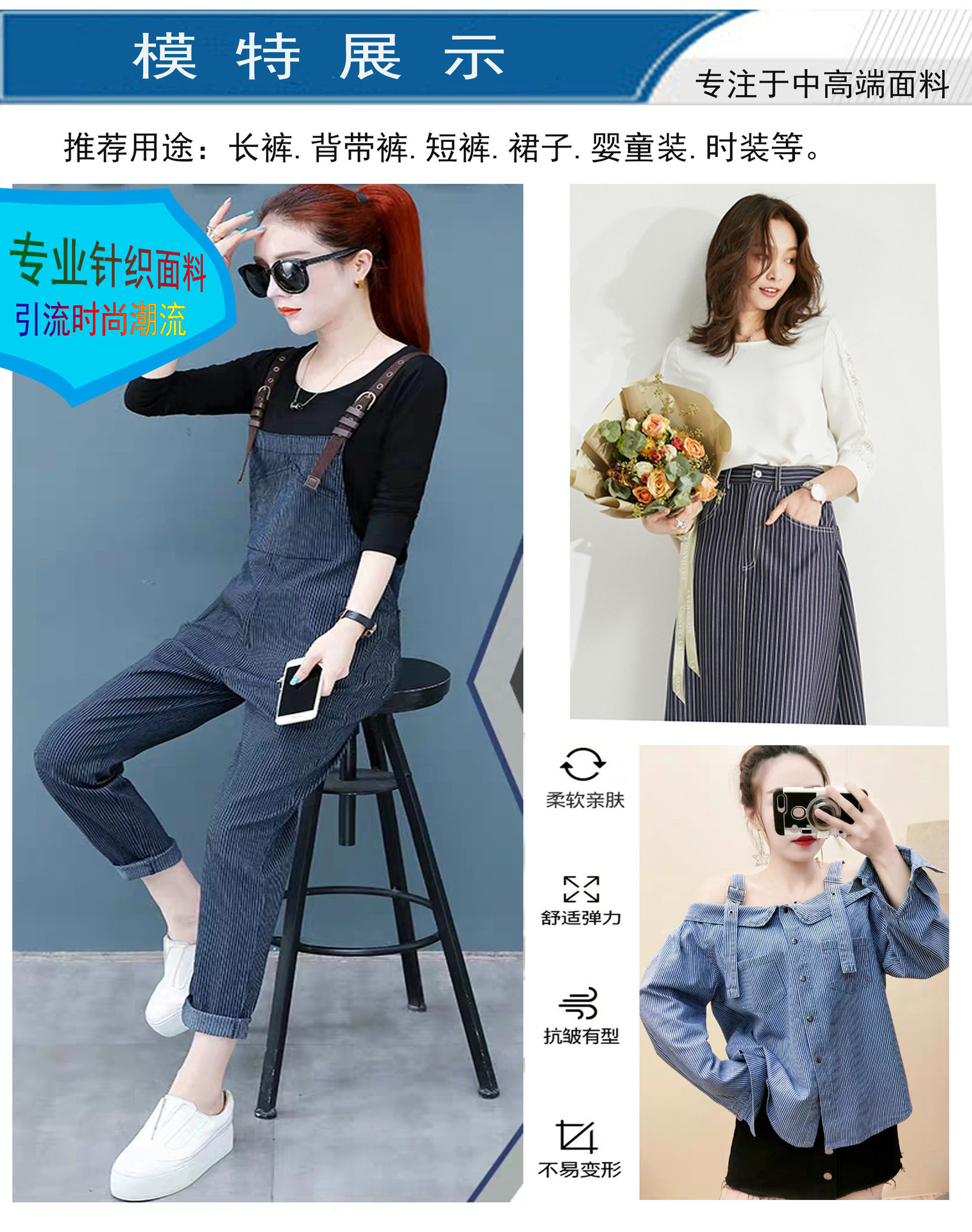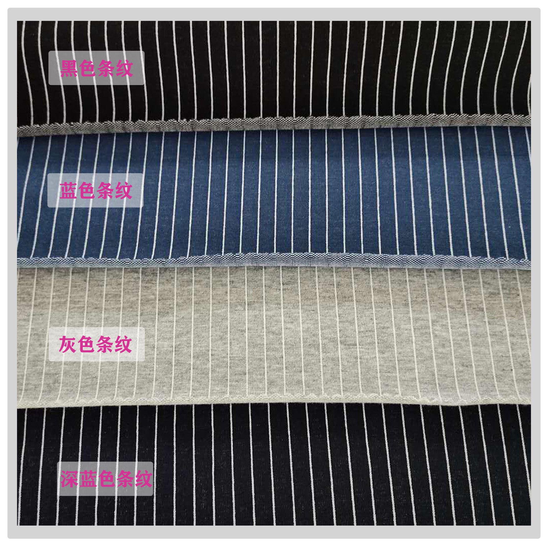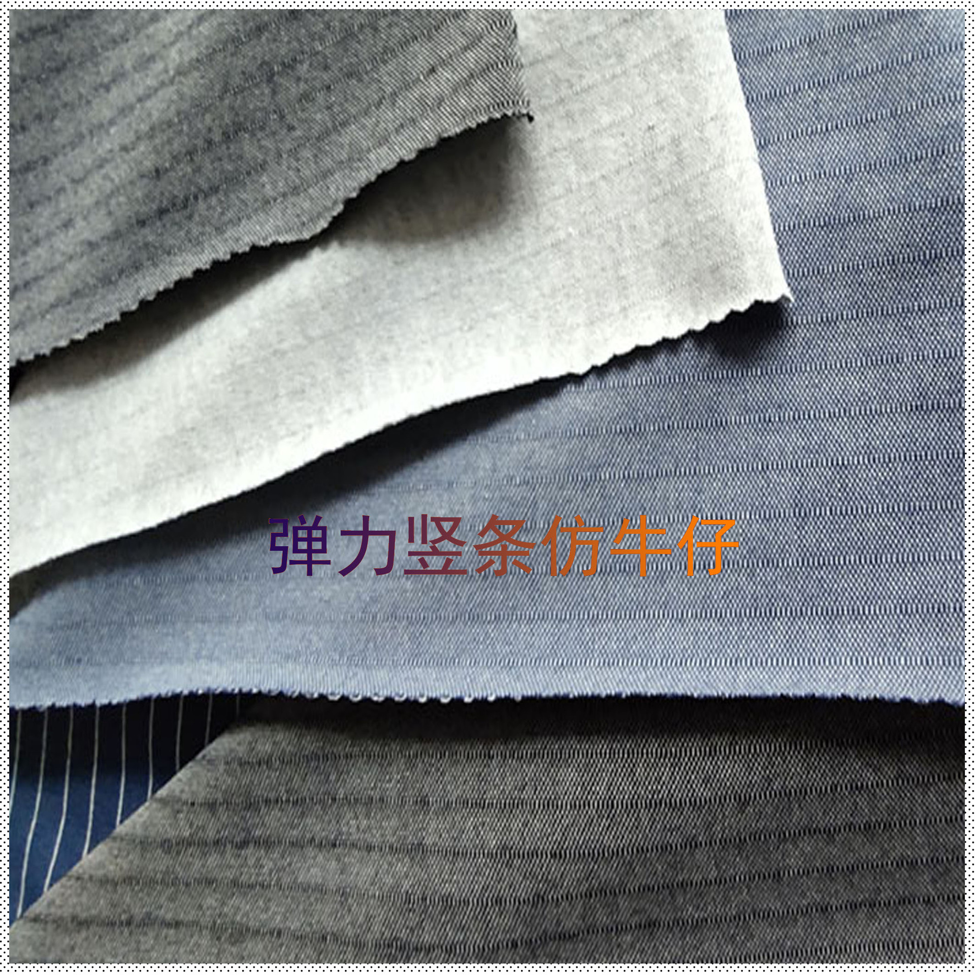 佛山工厂 32S/1棉涤弹力竖条纹针织牛仔布 裤实童装裤色织竖条纹