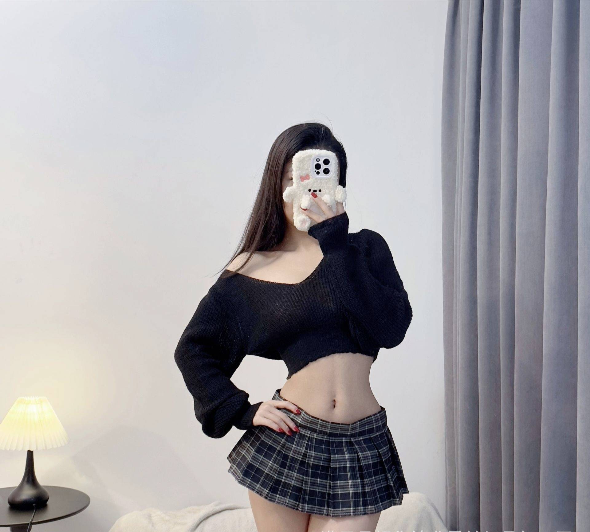 情趣毛衣性感可爱校园低领毛衣百褶裙JK制服诱惑格子超短裙