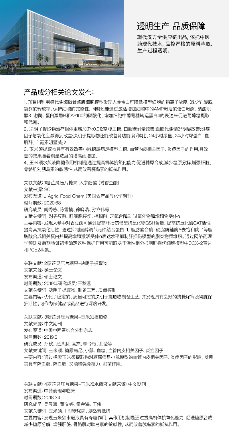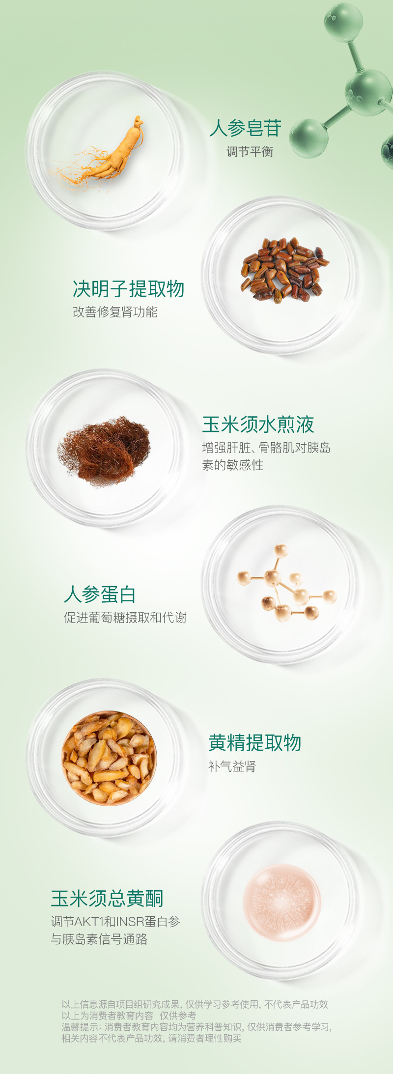 - 主要原料:青钱柳叶、玉米须、桑叶、枸杞子、决明子、玉竹、普洱茶、茯苓、黄精、人参(人工种植)