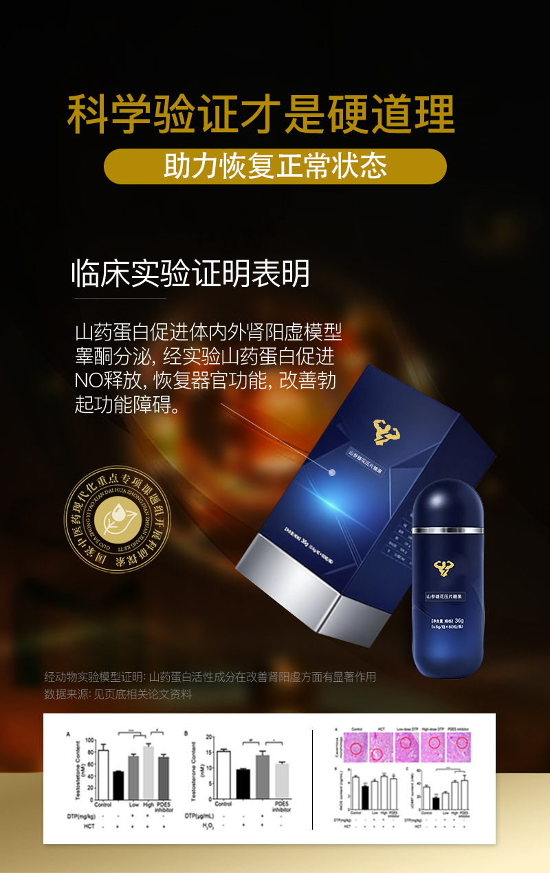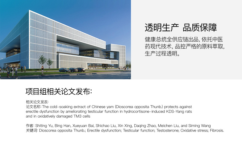 - 主要原料:鲜山药、覆盆子、茯苓、杜仲雄花、芡实、枸杞子、小茴香、甘草、桃仁、人参(人工种植)、肉桂
