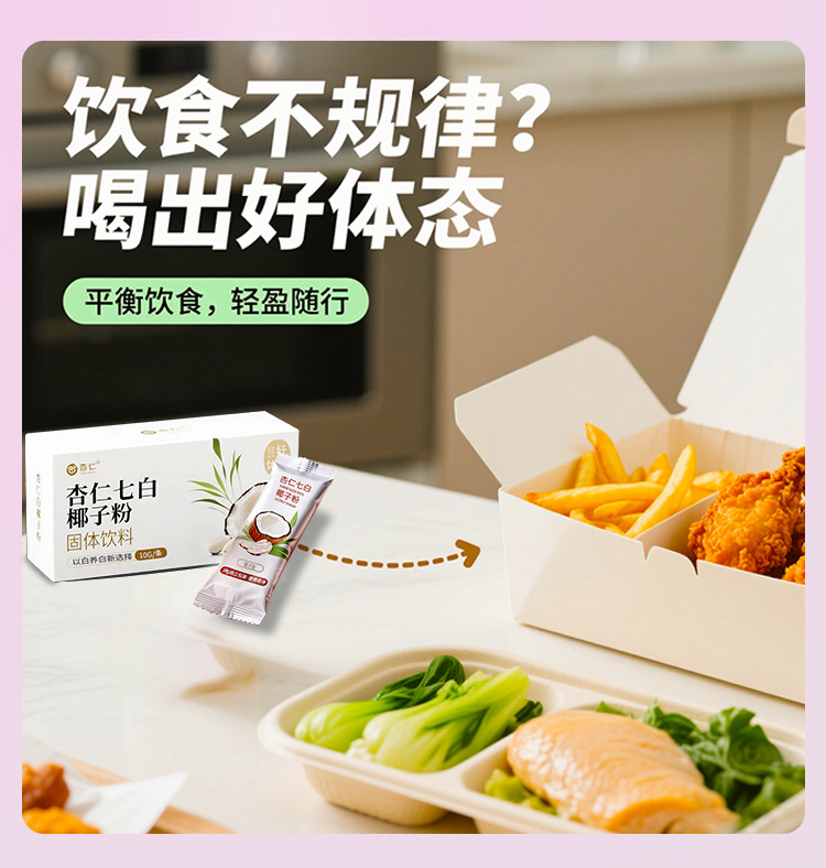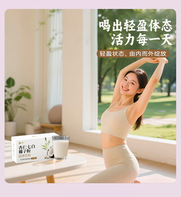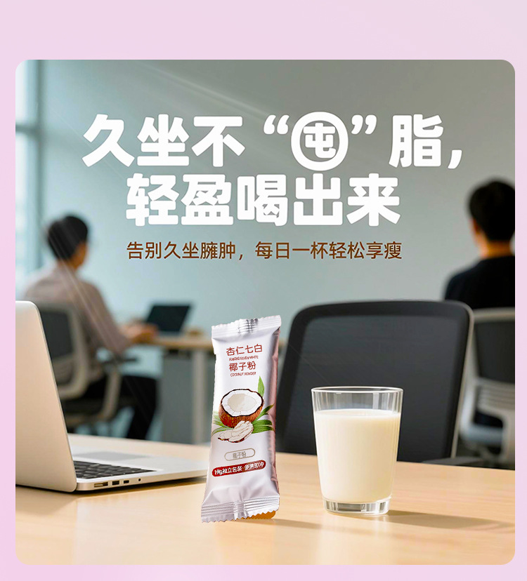 杏仁七白椰子粉固体饮料定制杏仁粉皮肤黄美白养生饮品独立袋装