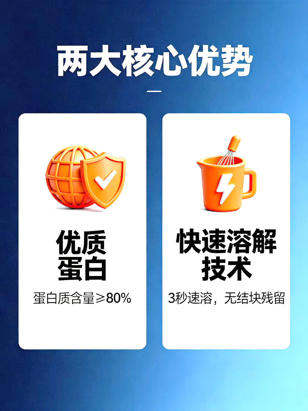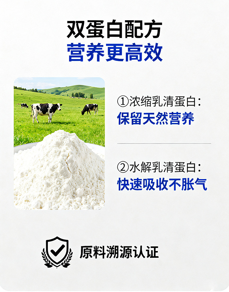 - 原料与配料:浓缩乳清蛋白粉、水解乳清蛋白粉