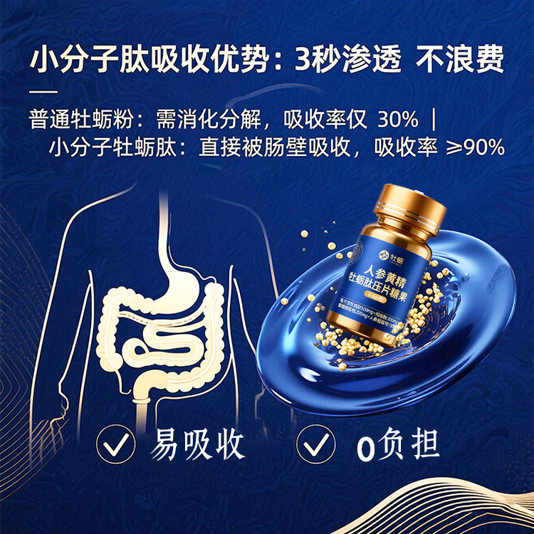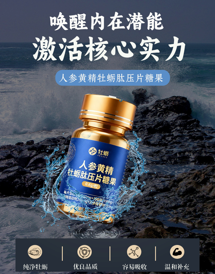 - 产品名称:人参黄精牡蛎肽压片糖果