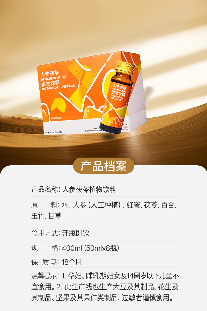- 产品名称:人参茯苓植物饮料