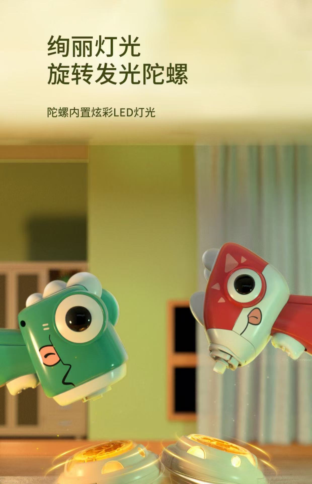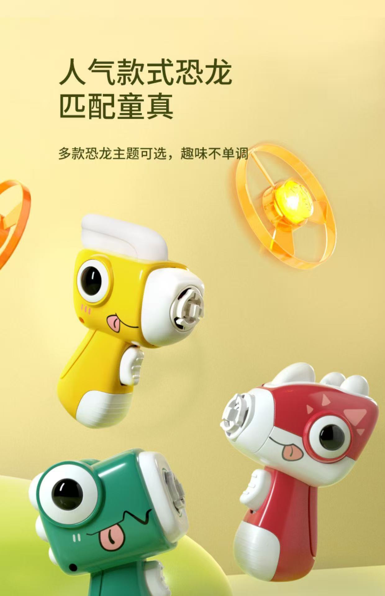 【特价】卡通恐龙陀螺发光飞碟竹蜻蜓旋转发射陀螺枪飞盘男孩玩具