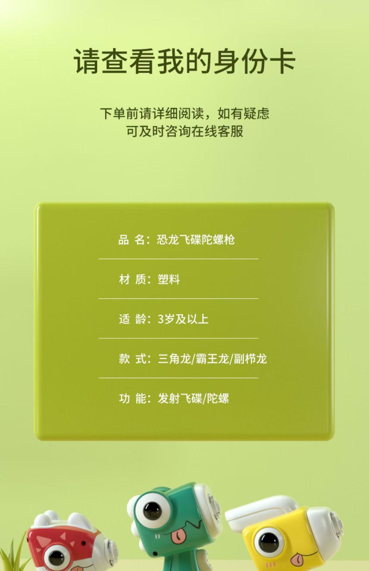 - 规格:三角龙-苹果绿(4飞盘+1灯光 飞盘+1灯光陀螺)