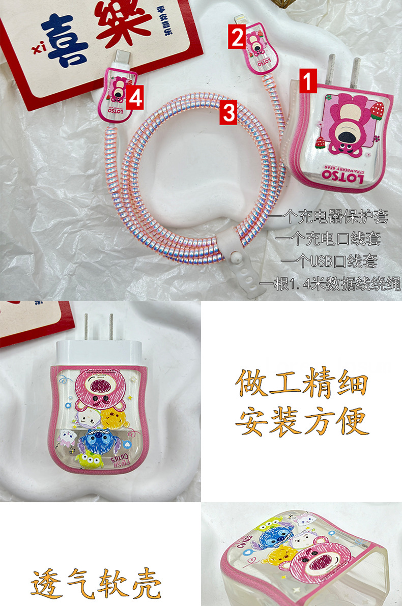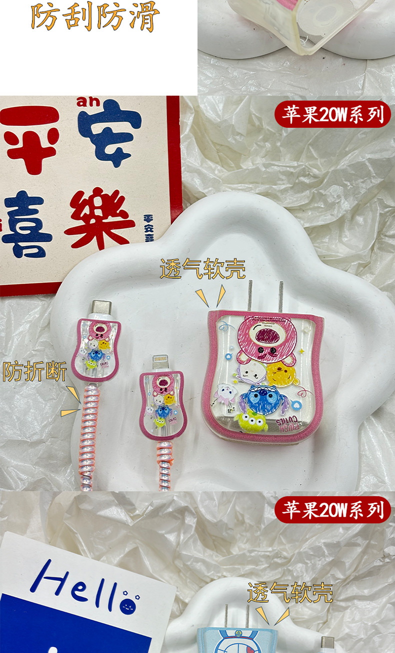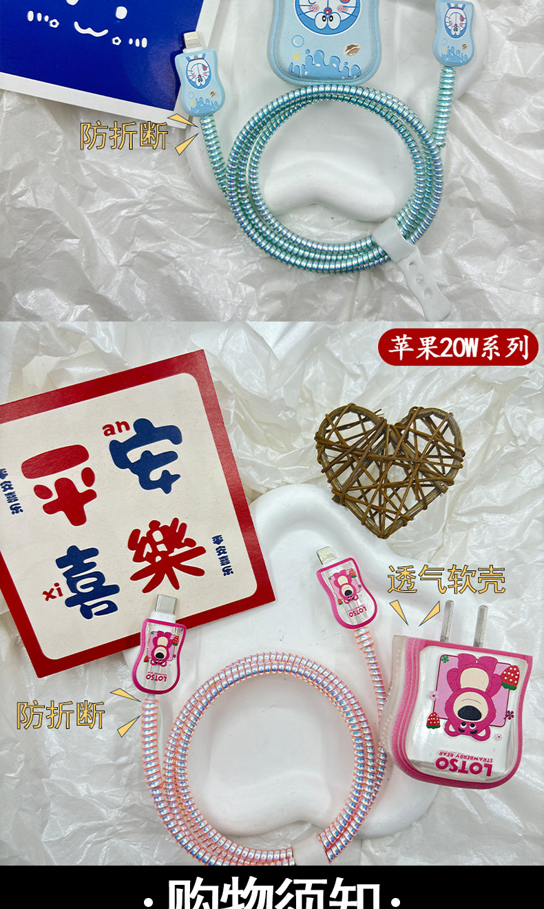 适用苹果20W草莓熊保护套15数据线防折断多啦a梦数保护壳iphone