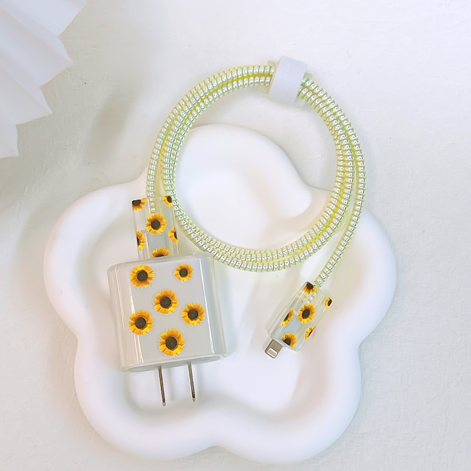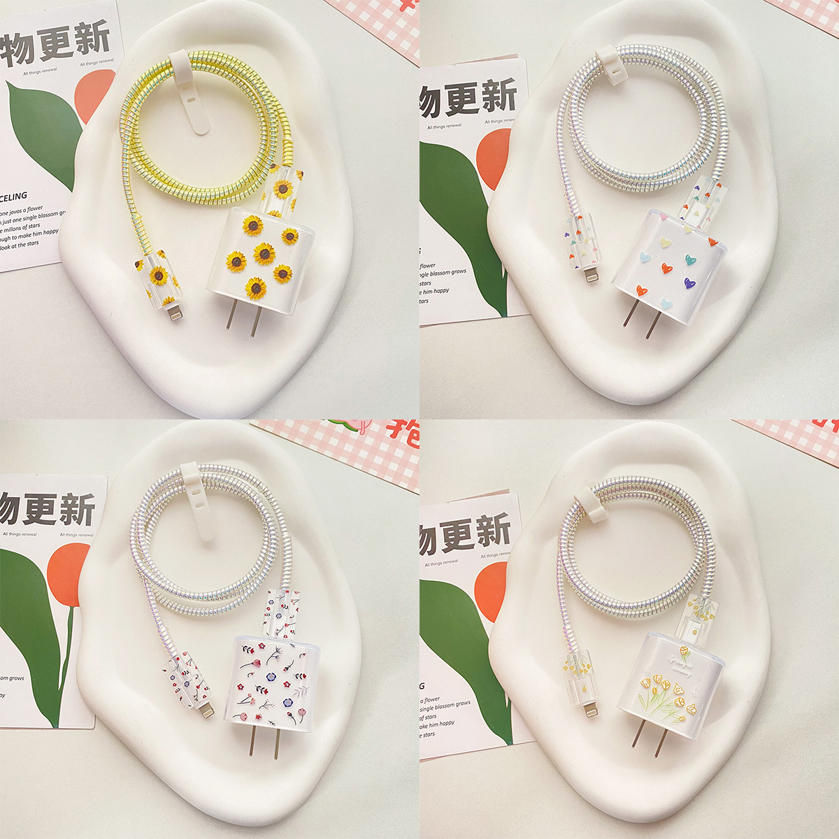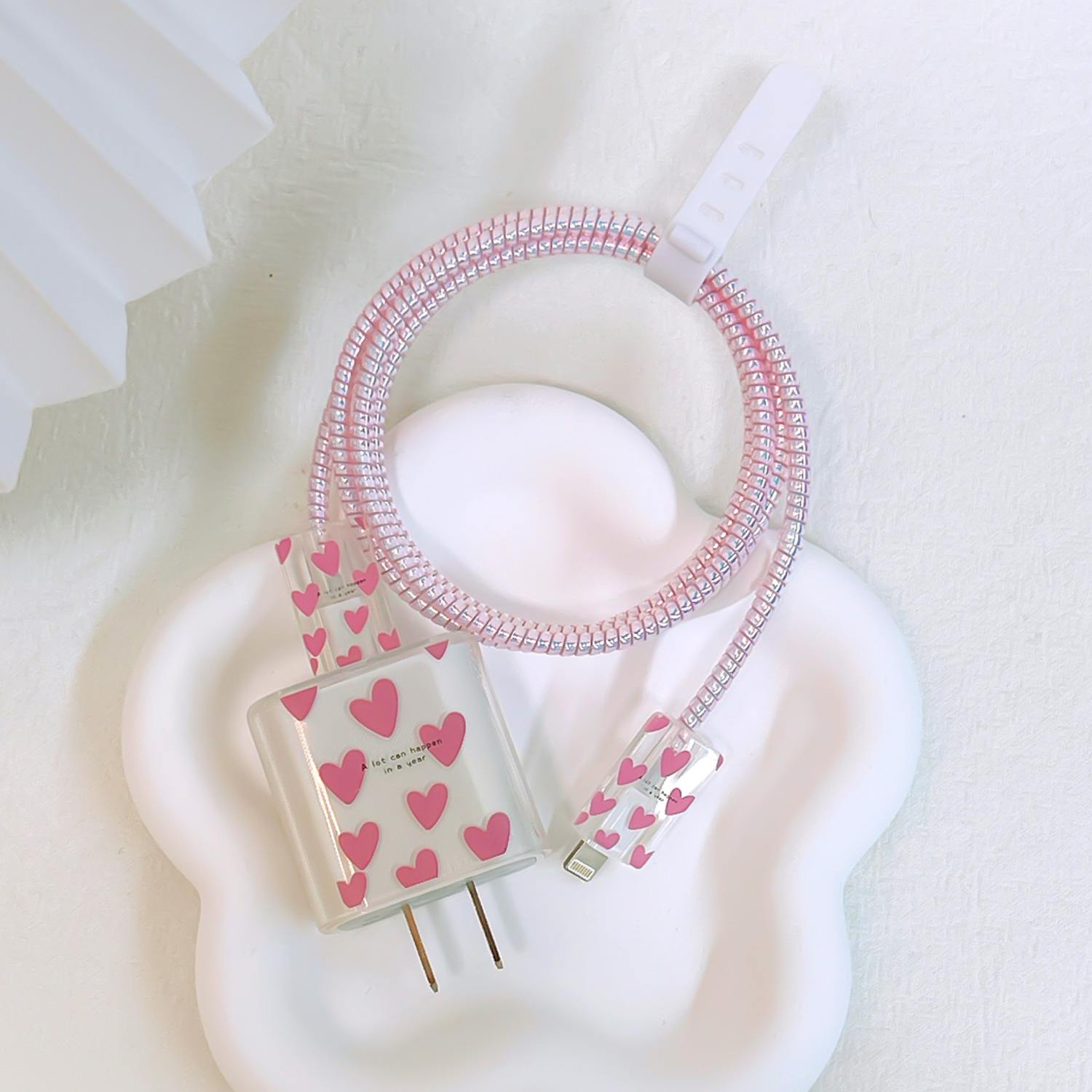 多彩小爱心适用于苹果18W/20W充电器保护壳镭射缠绕线咬线器保护