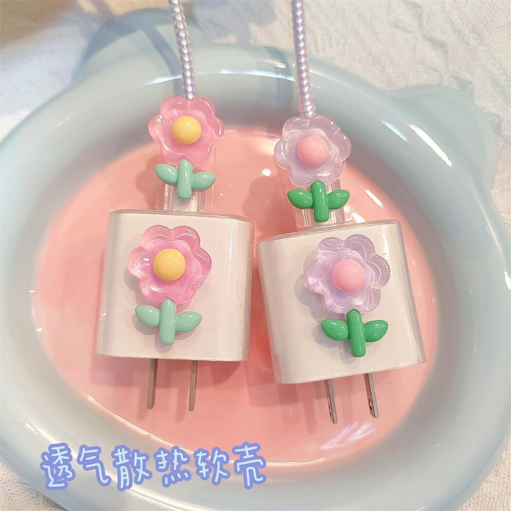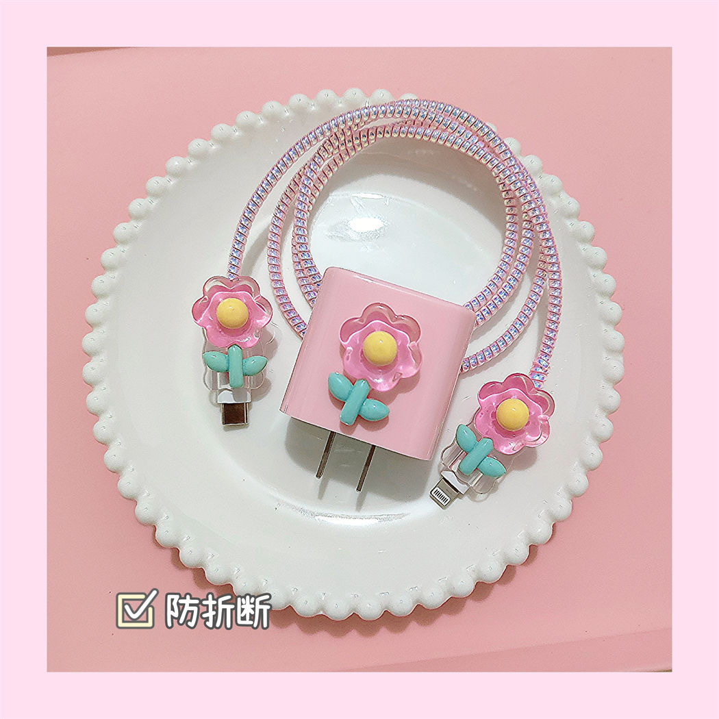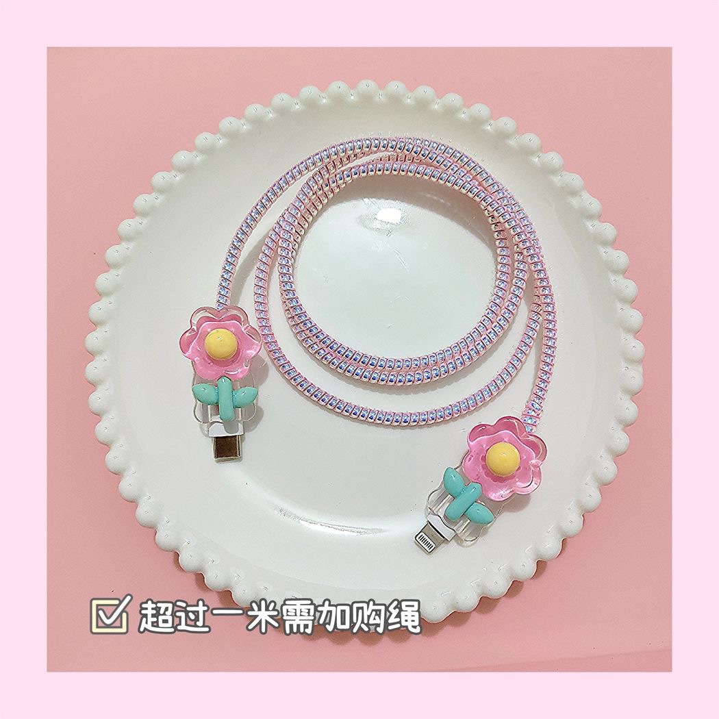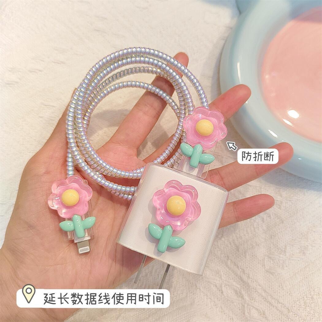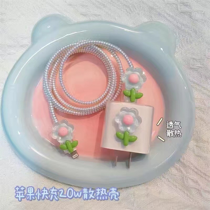 新款小花适用苹果14P数据线保护套20w快充充电器保护套绳咬线器