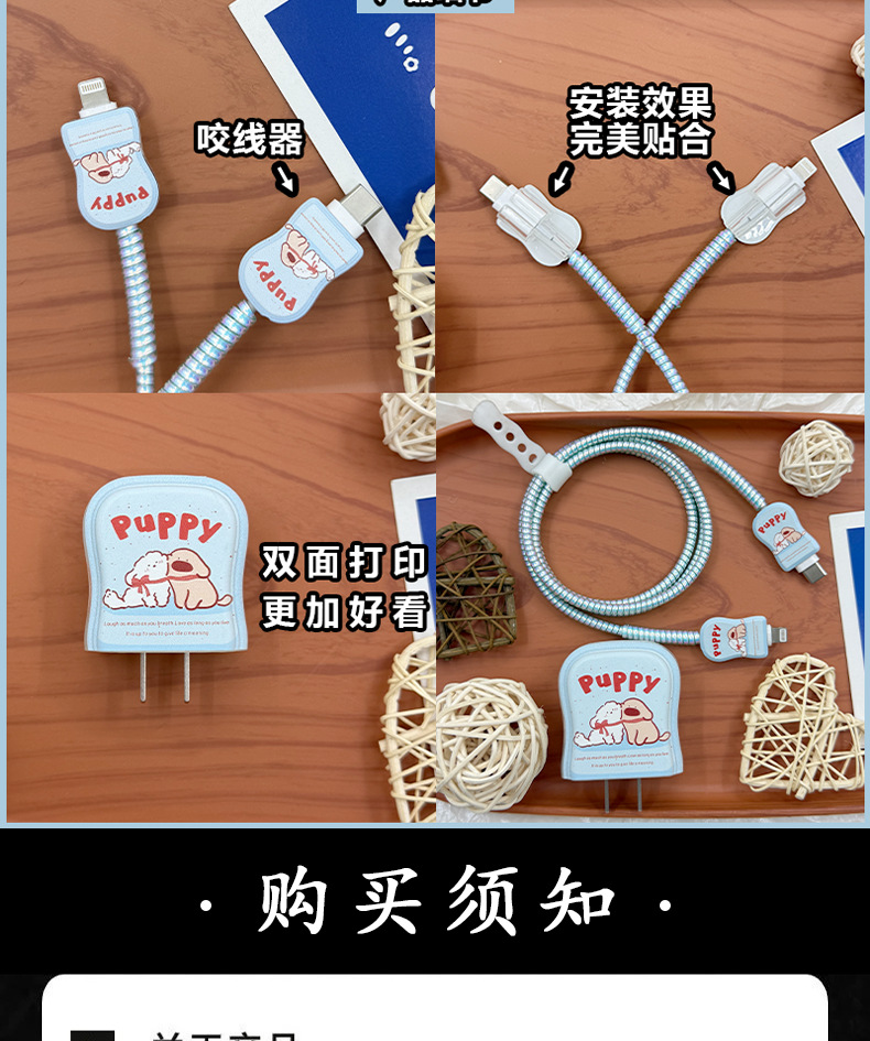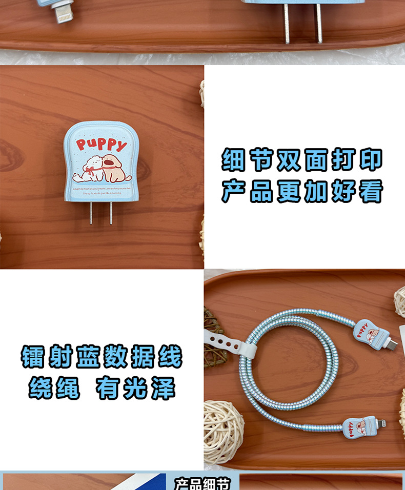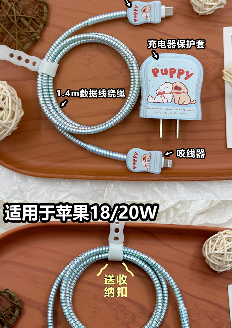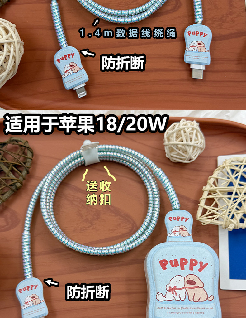 卡通小狗苹果20W数据线保护套适用iPhone15充电器防摔套保护防折