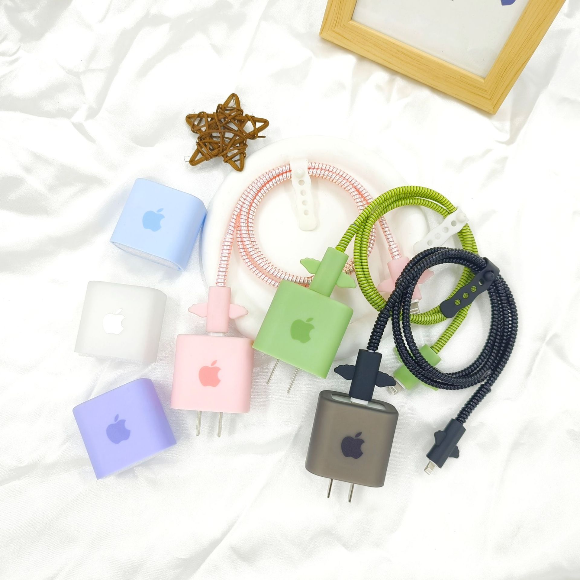 - 颜色:磨砂半透明苹果标+天使咬线器+白线