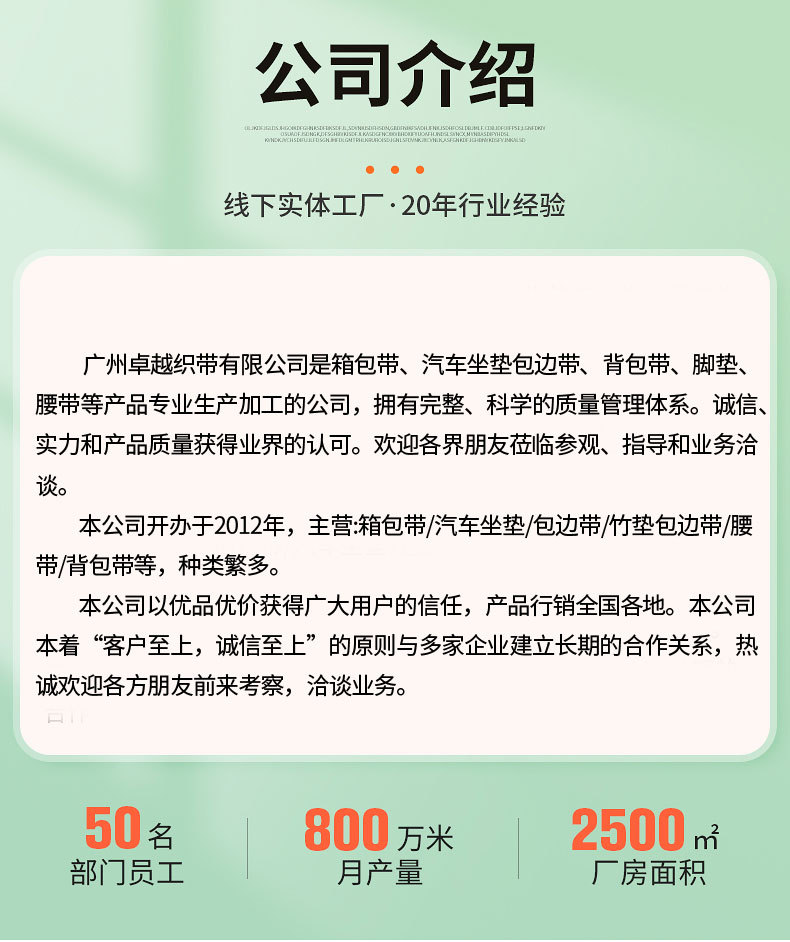 - 规格型号:12号卡其*2.2cm*250D*梭织*2.2mm(1卷100码)