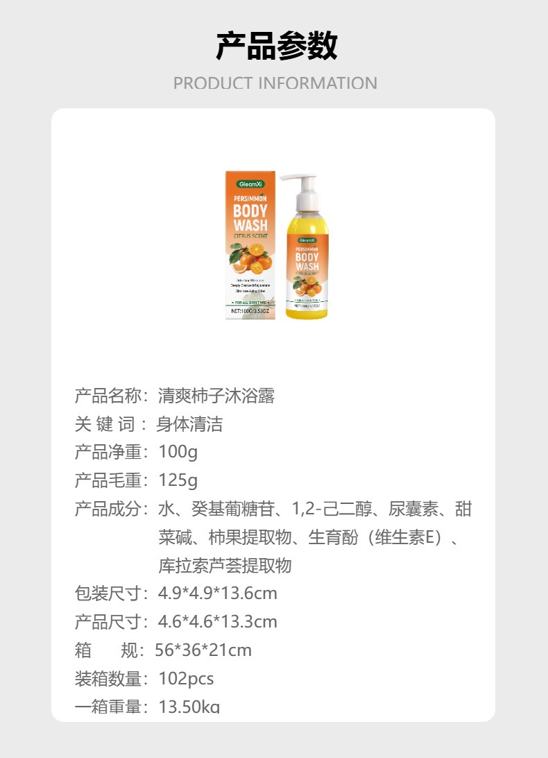 Gleamxi 清爽柿子沐浴露 清新果香温和清洁柔滑身体肌肤沐浴乳