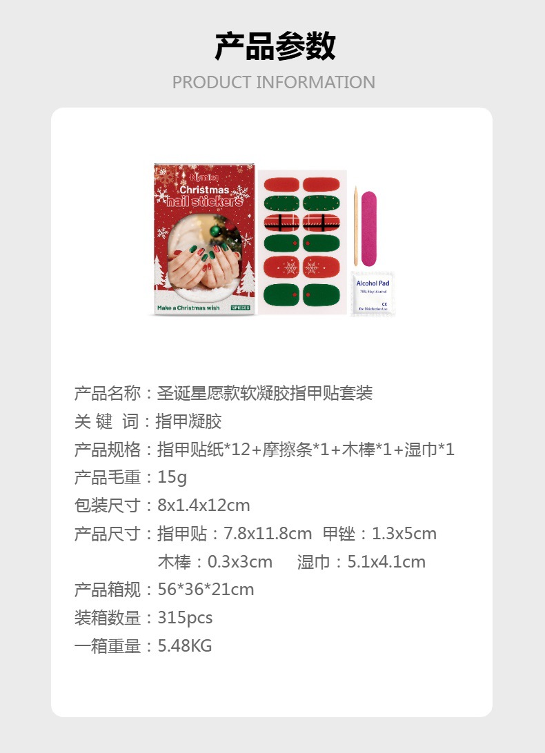 Nymixa圣诞星愿款软凝胶指甲贴套装 DIY创意炫彩混色便捷美甲装饰
