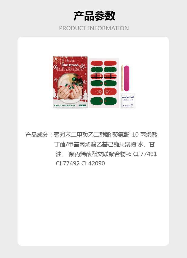 - 规格:指甲贴纸*12+摩擦条*1+木棒*1+湿巾(仅供外贸出口销售,禁止国内销售,购买等同默认免责声明)