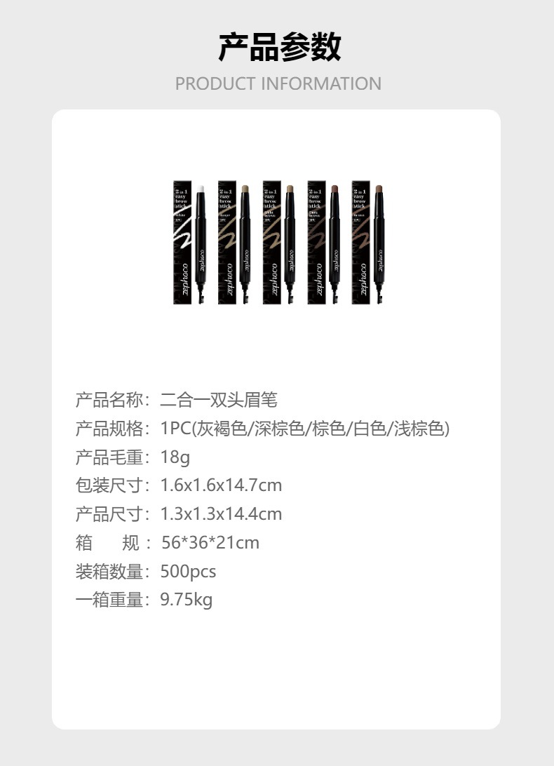 ZEPHOCO 二合一双头眉笔 立体自然流畅顺滑显色日常眉型修眉笔