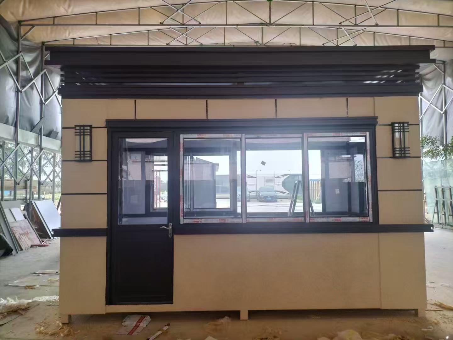 建材 岗亭保安亭门卫室值班室钢结构岗亭门卫休息室移动治安亭真石漆岗亭