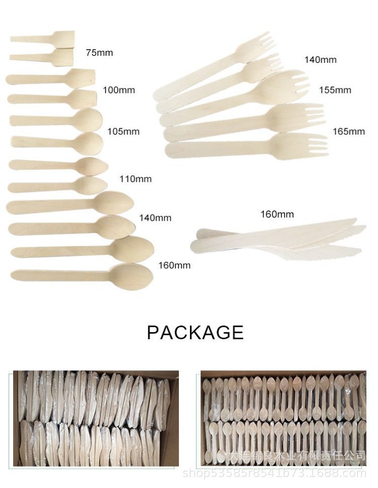 批发多种规格木质餐具可降解140mm一次性桦木餐具木制刀叉勺套装