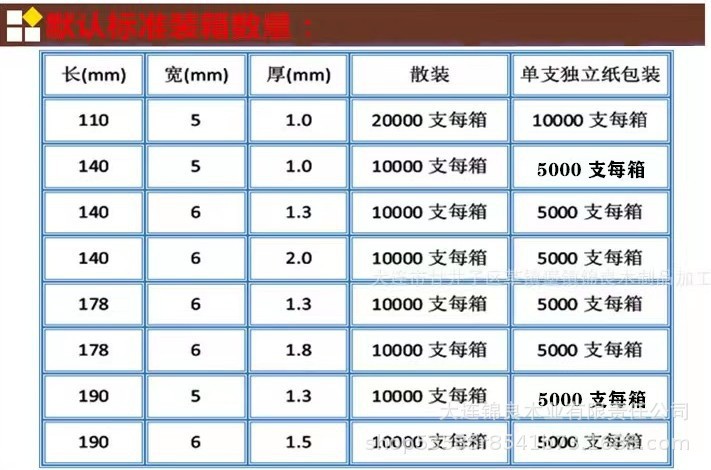 - 规格:190*6*1.5mm单支纸包装(5千支/箱)