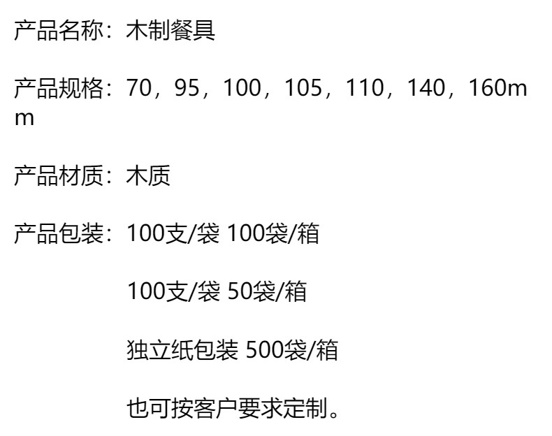 - 规格:100mmA级小圆木勺(约1万支每箱)