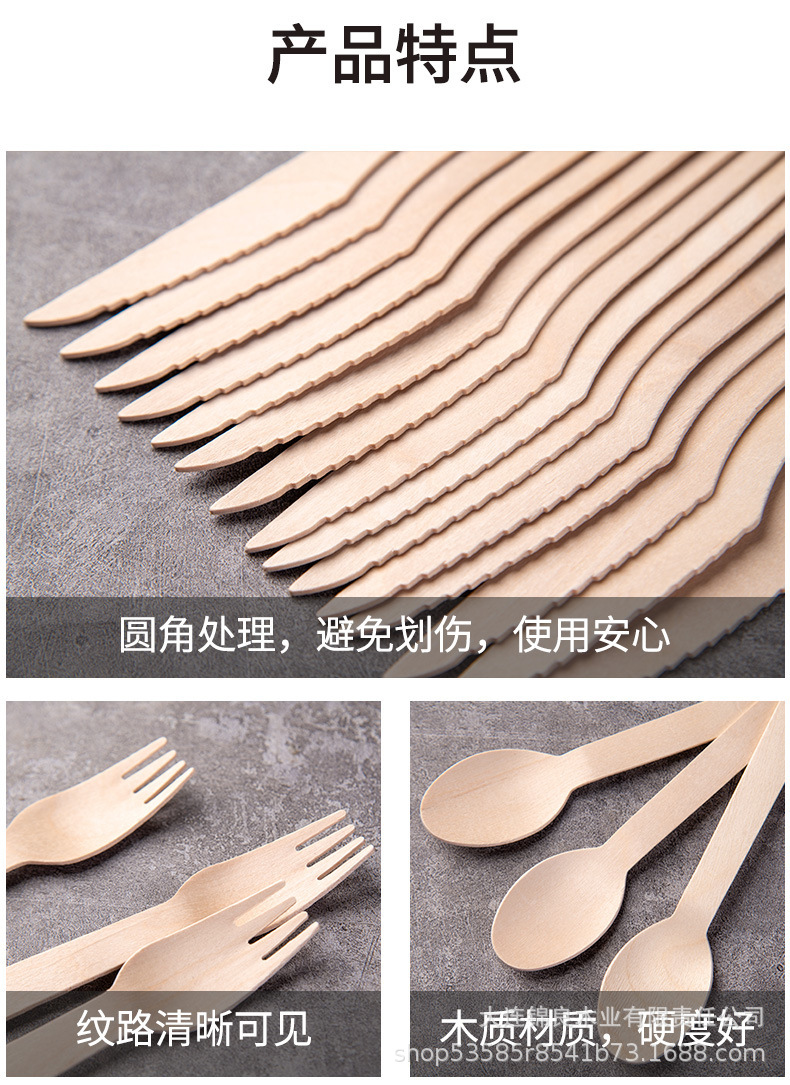 一次性木制刀叉勺套装可降解木质餐具独立包装可加字木制西餐餐具