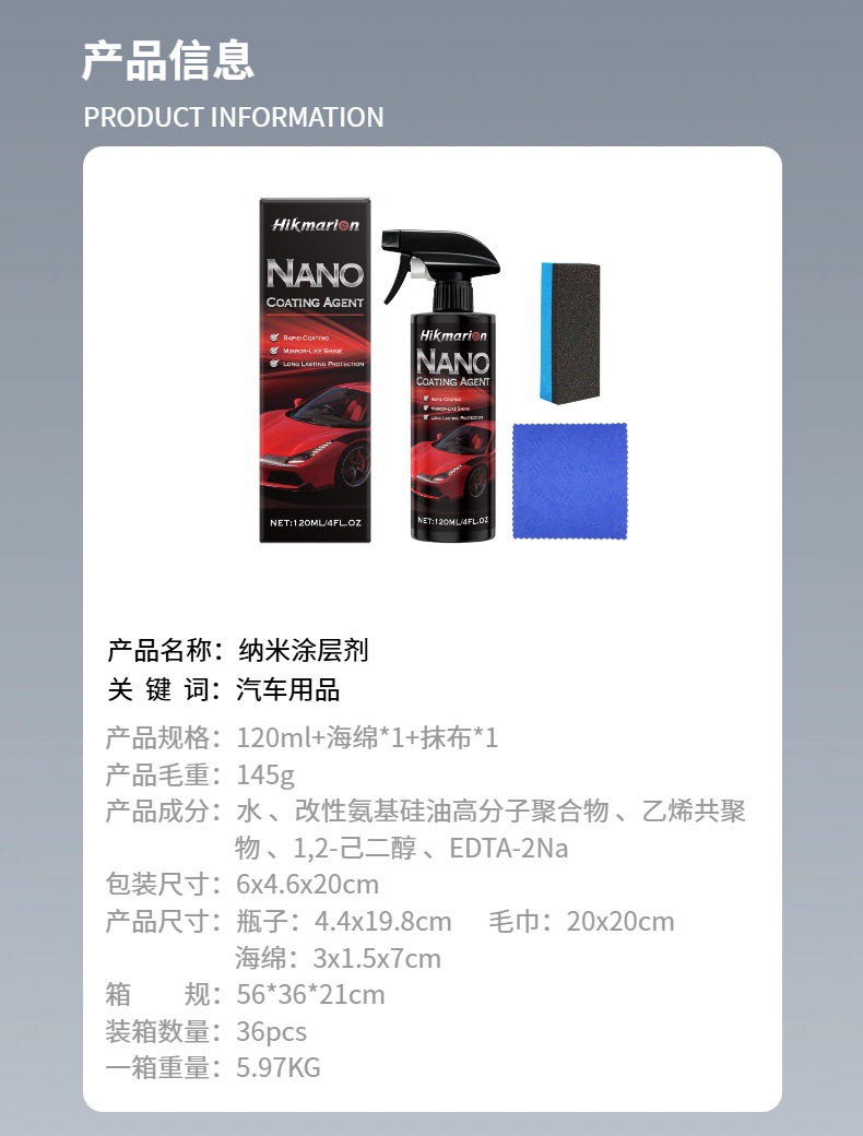 Hikmarion 纳米涂层剂 汽车漆面防护日常亮泽清洁便捷保养套装