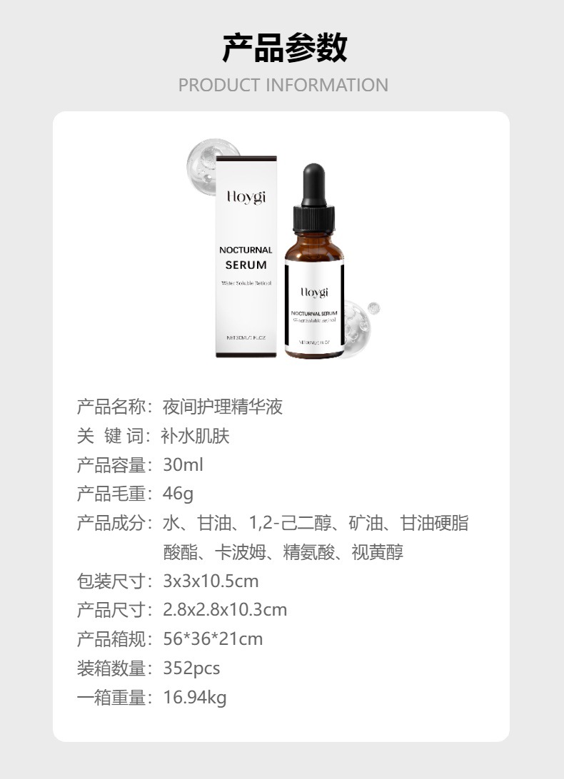 - 颜色分类:夜间精华液