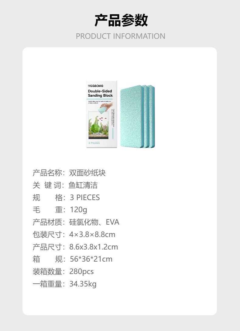 YEGBONG双面砂纸块 多功能鱼缸清洁海绵双面可重复除垢清洁工具