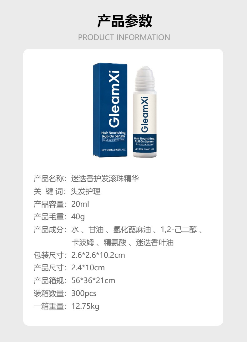 GleamXi 迷迭香护发滚珠精华 温和滋润头发柔顺轻盈秀发光泽头皮