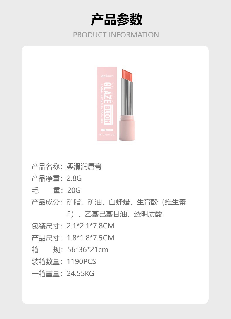ZEPHOCO 柔滑润唇膏 日常呵护滋润焦糖色丰盈水润保湿唇部护理膏
