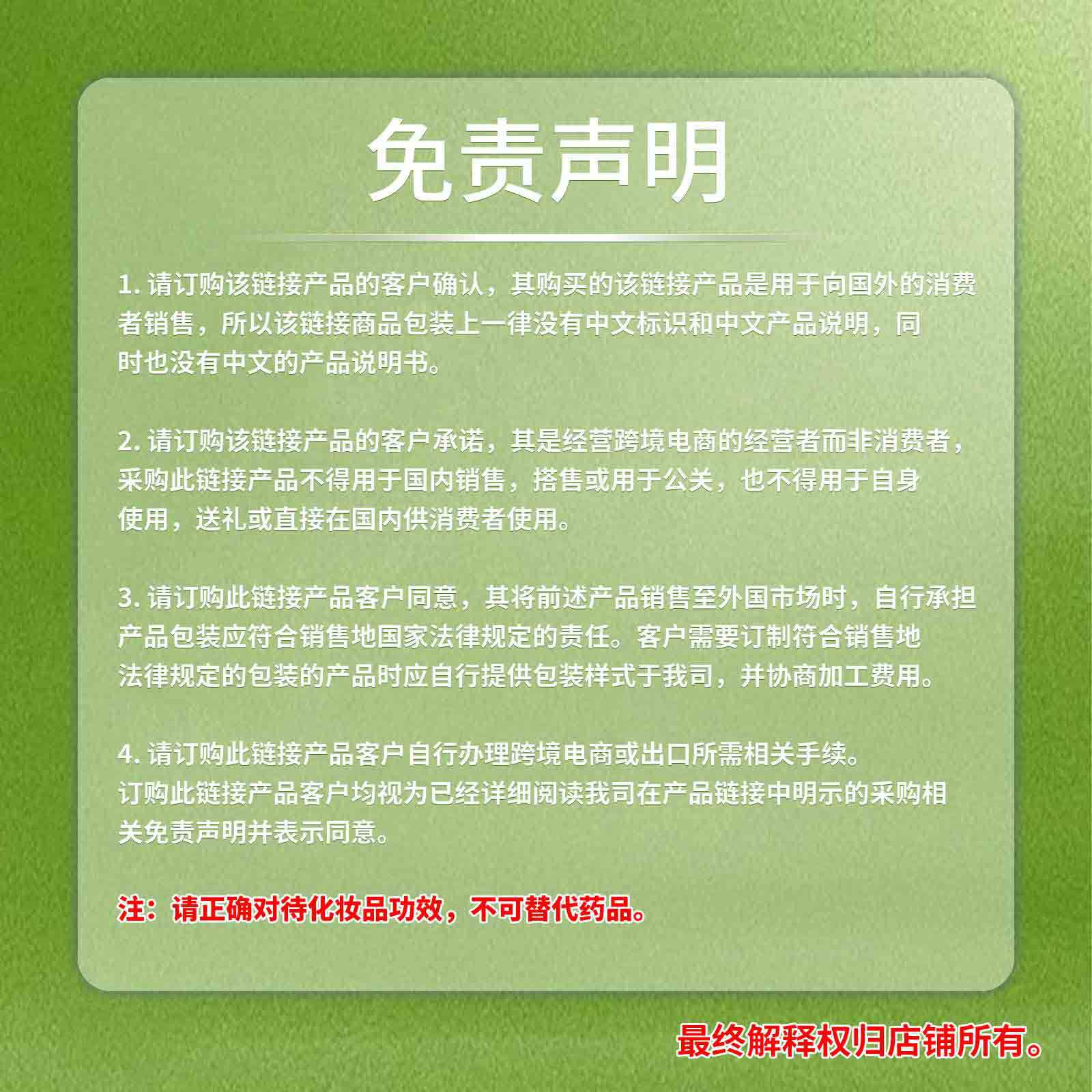 - 净含量:50ml(仅供外贸出口销售,禁止国内销售,购买等同默认免责申明 )