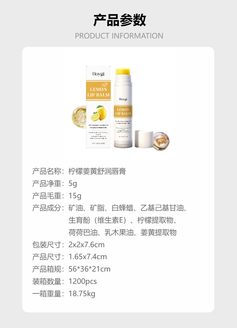 HOYGI 柠檬姜黄舒润唇膏 舒润提亮唇部肌肤滋润柔软唇部保湿润唇