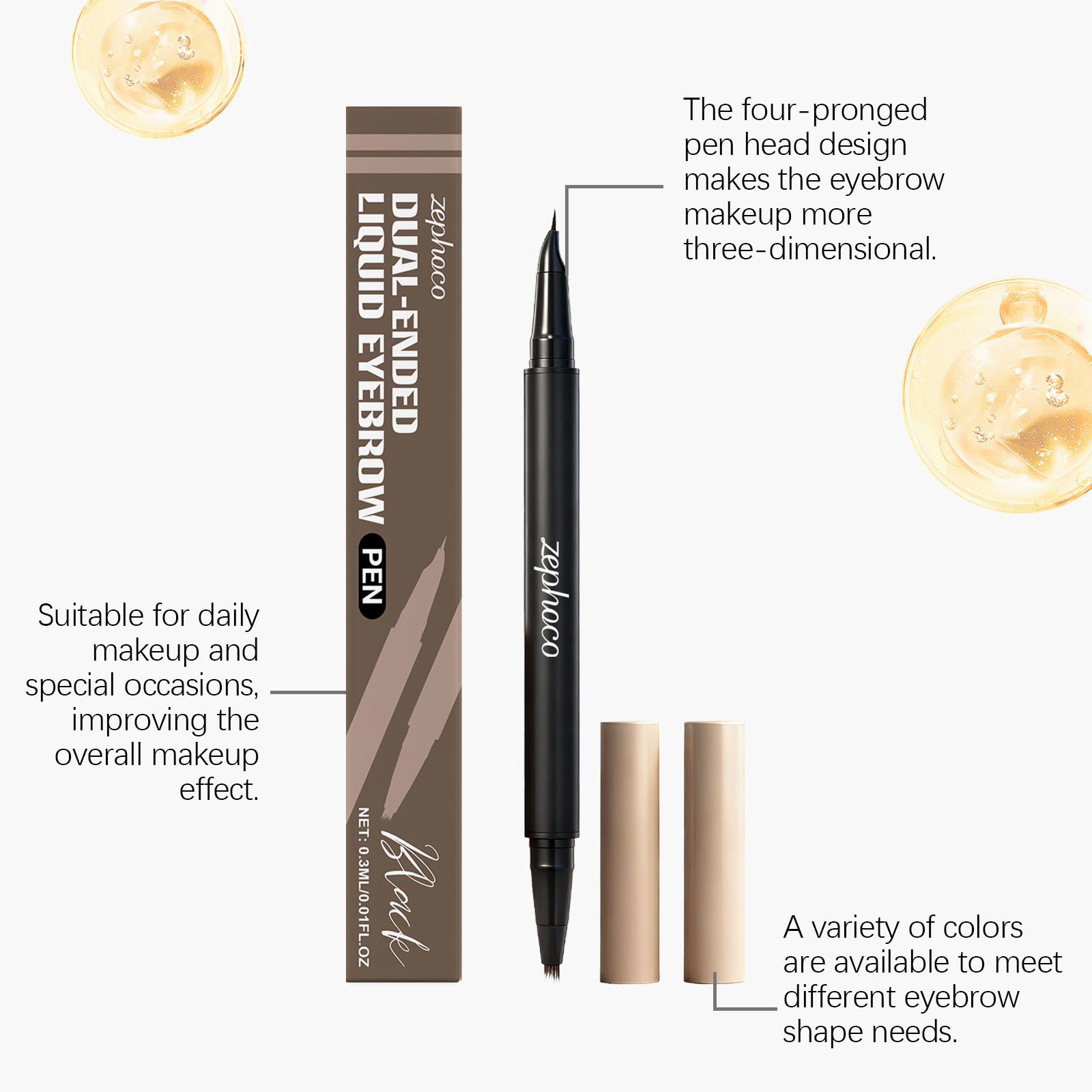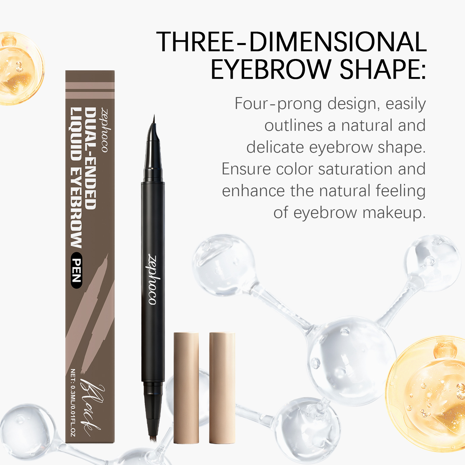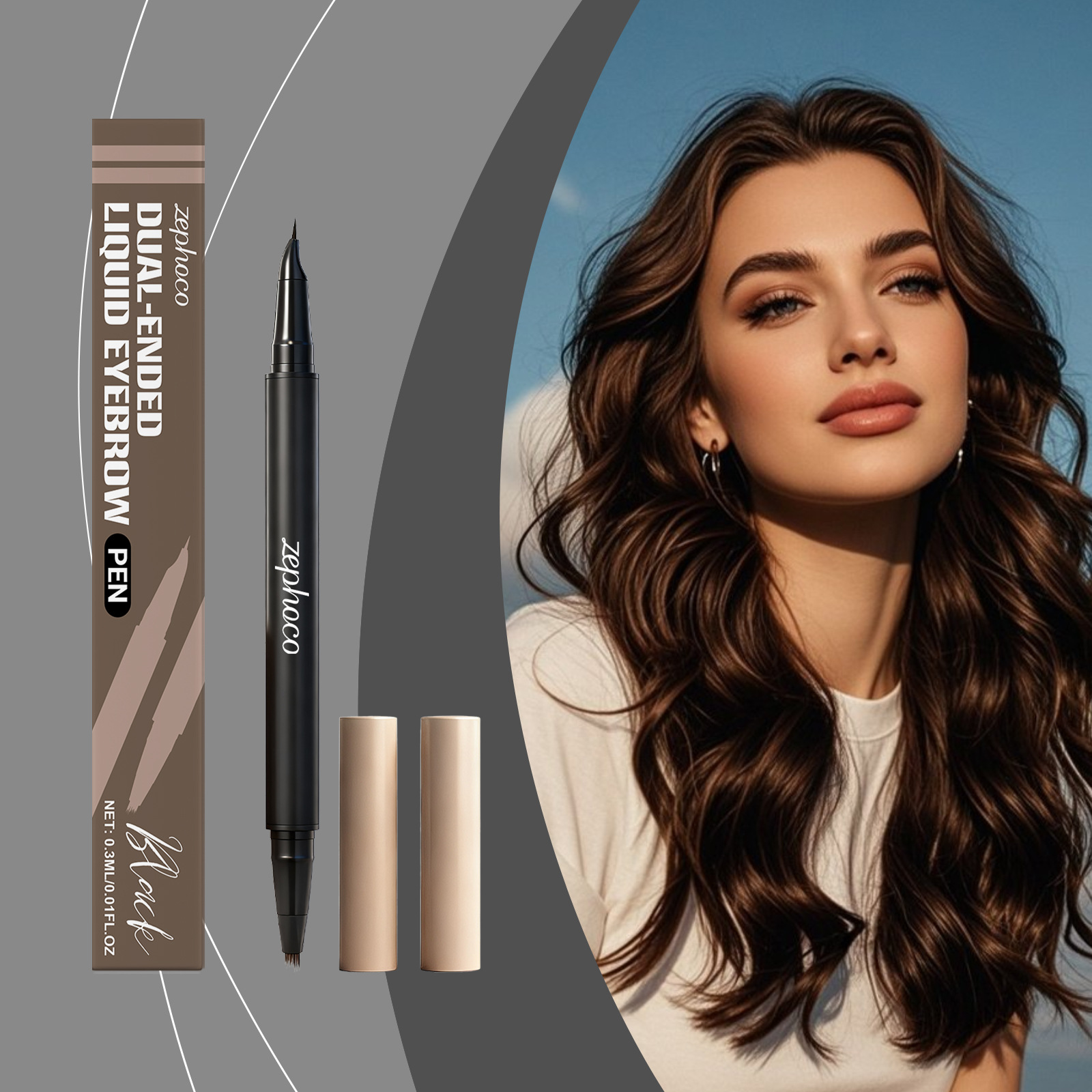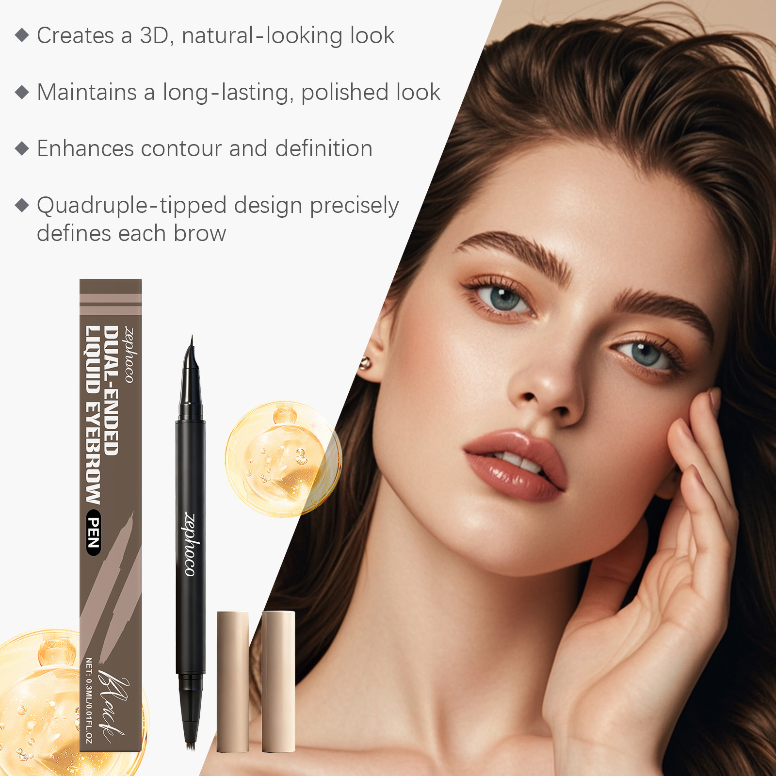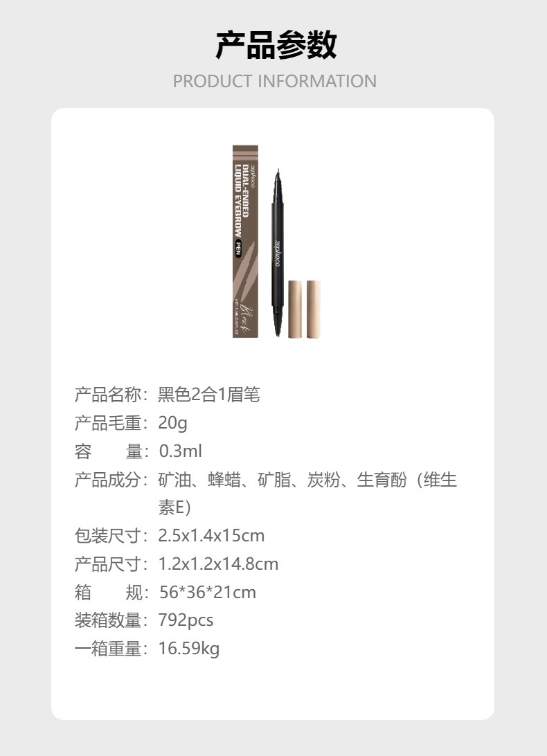 zephoco黑色2合1眉笔 立体显色不脱妆不晕染自然眉形便捷顺滑眉笔