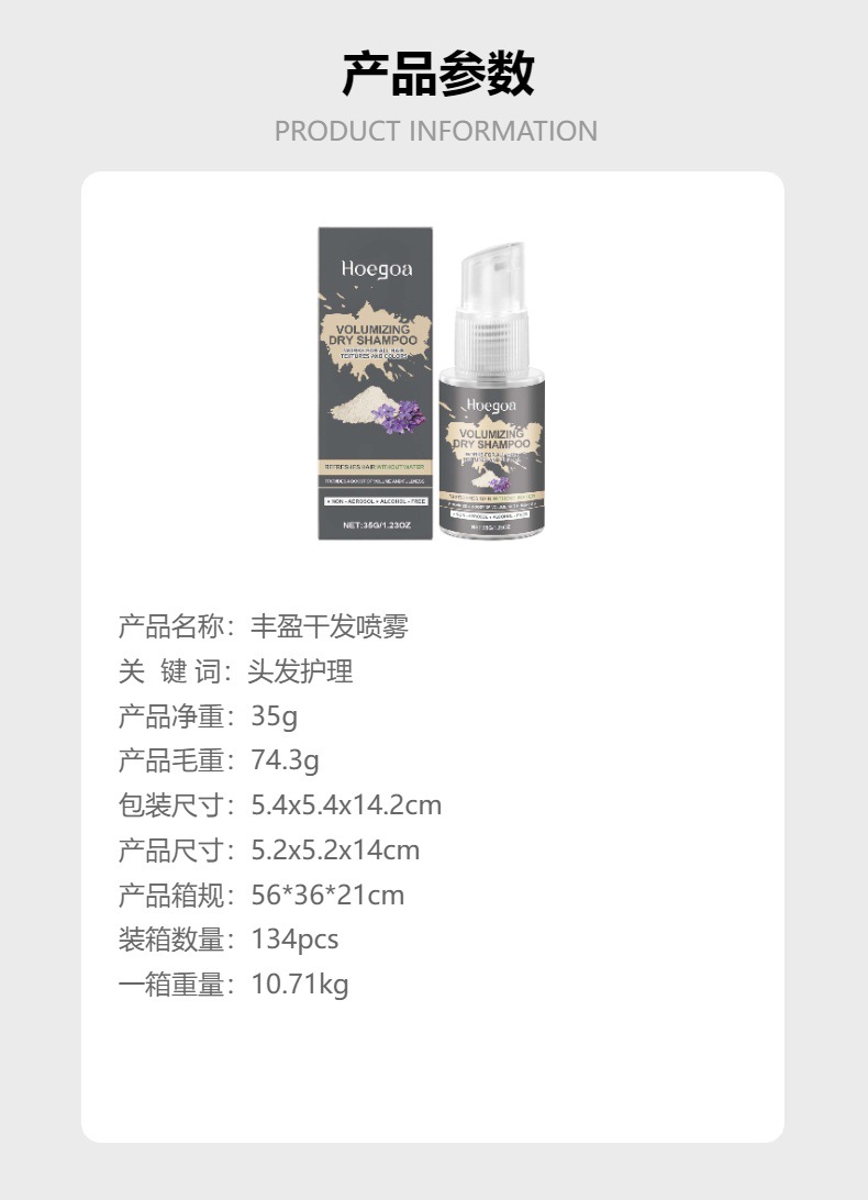 HOEGOA 丰盈干发喷雾 自然蓬松护发轻盈清爽头发免洗护理干发喷雾