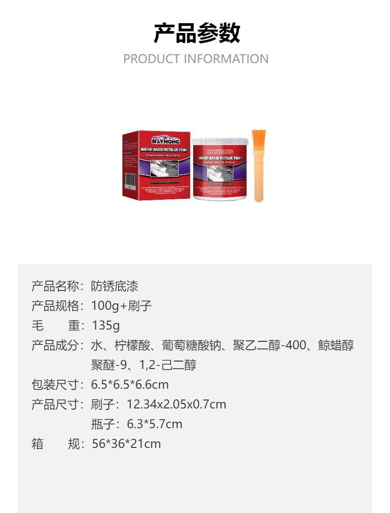 Rayhong 免除锈底漆去除水性底漆金属翻新松锈铁锈螺栓解锈转化剂