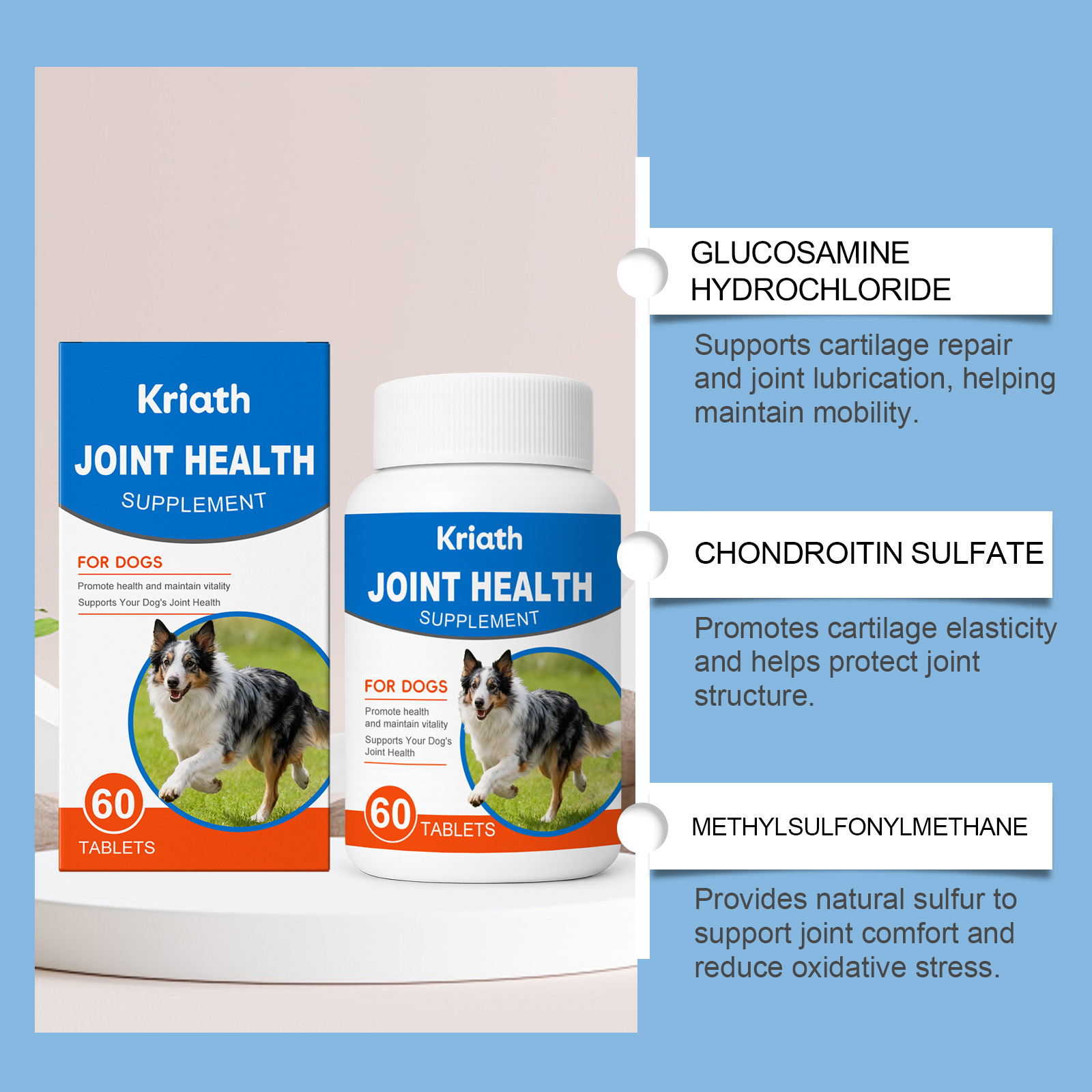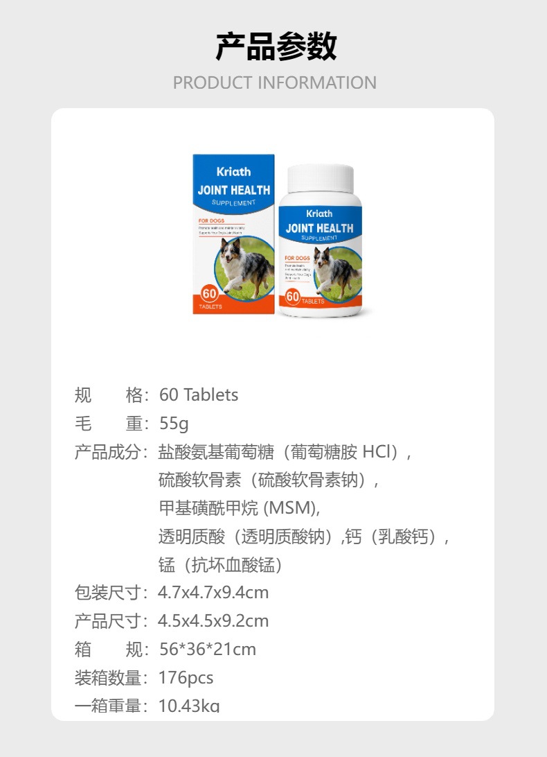 Kriath狗狗关节护理补充片剂 滋养呵护狗狗关节活力日常舒适护理