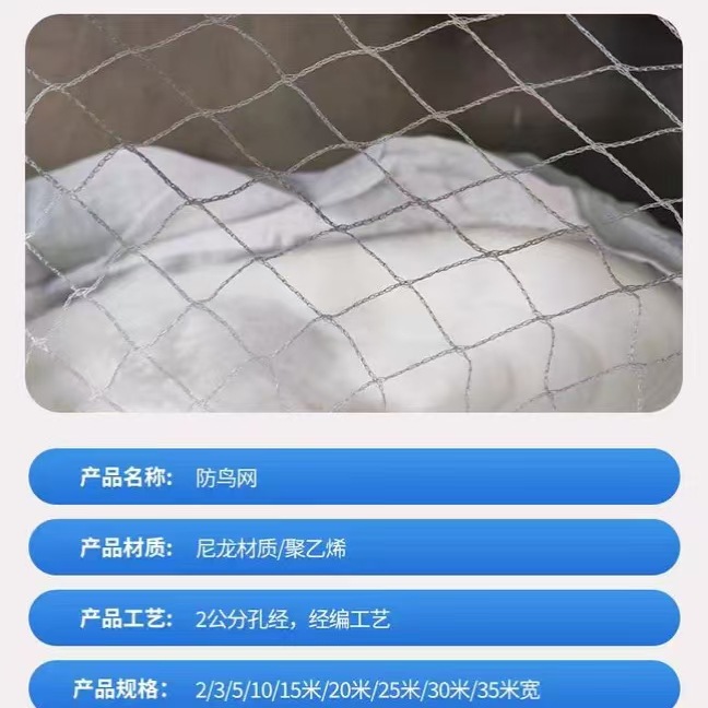 果园防鸟网谷地机场防麻雀网尼龙聚乙烯拦鸟网葡萄养殖农用防鸟网