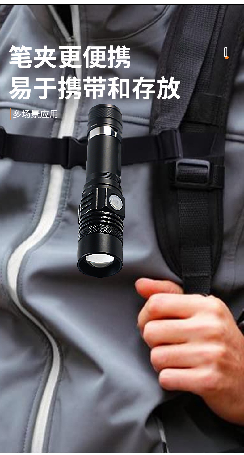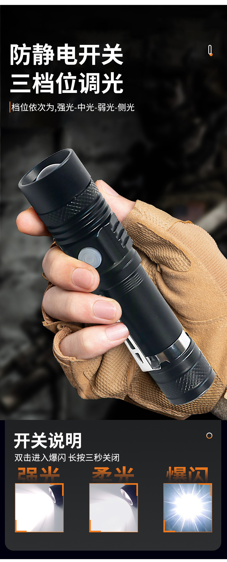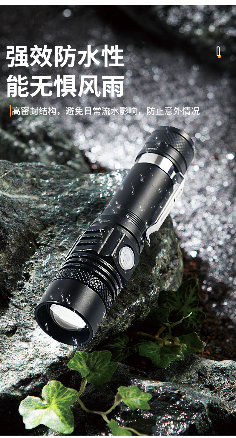 铝合金手电筒透镜变焦多功能户外电筒夜跑骑行巡逻探照灯手电批发