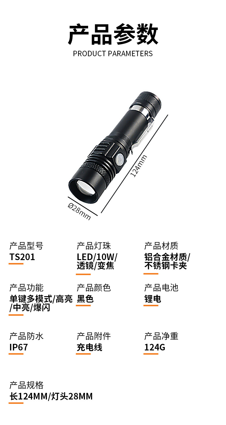 - 颜色:TS201铝合金/不锈钢卡夹/不含电池