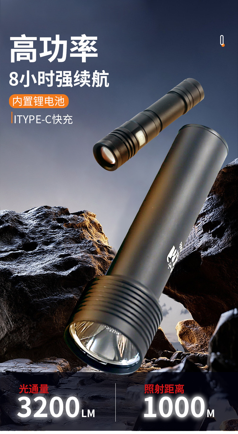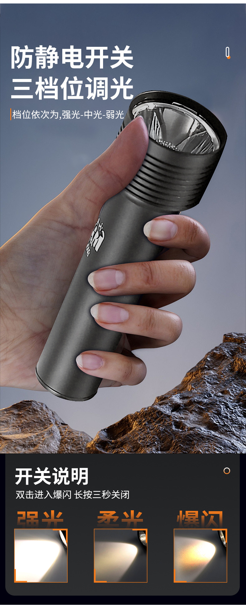 跨境led手电筒户外强光超亮充电便携露营长续航小型手握式电筒