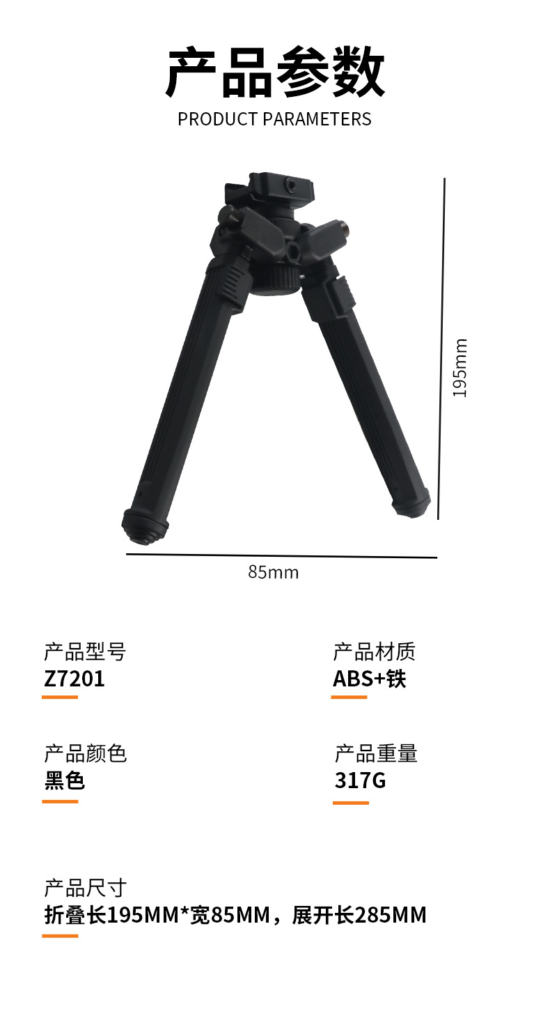 现货马盖普picatinny两脚架可伸缩脚架批发尼龙纤维合金一体支架
