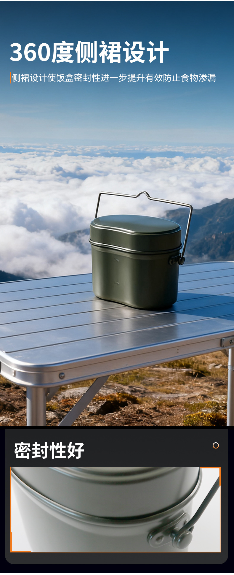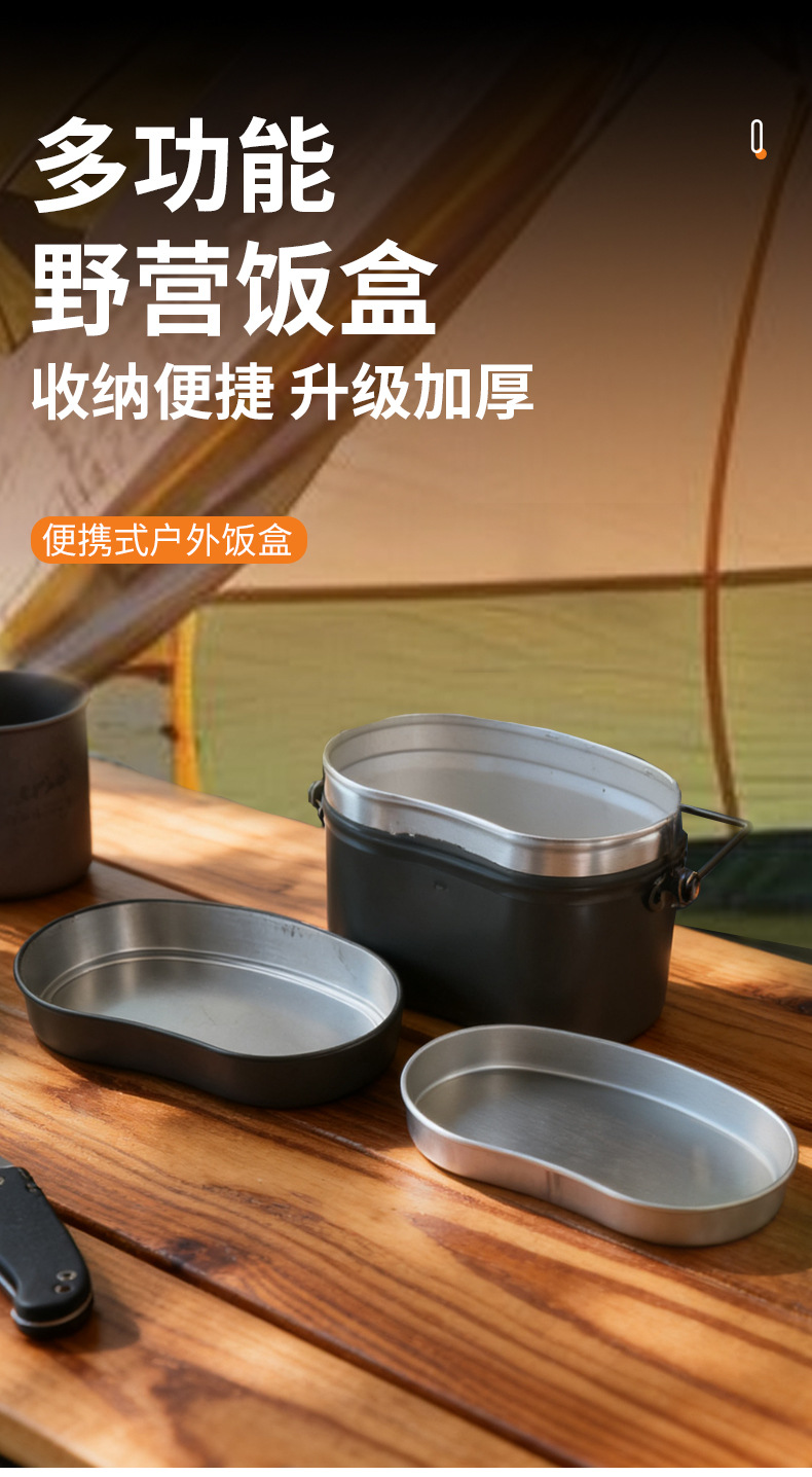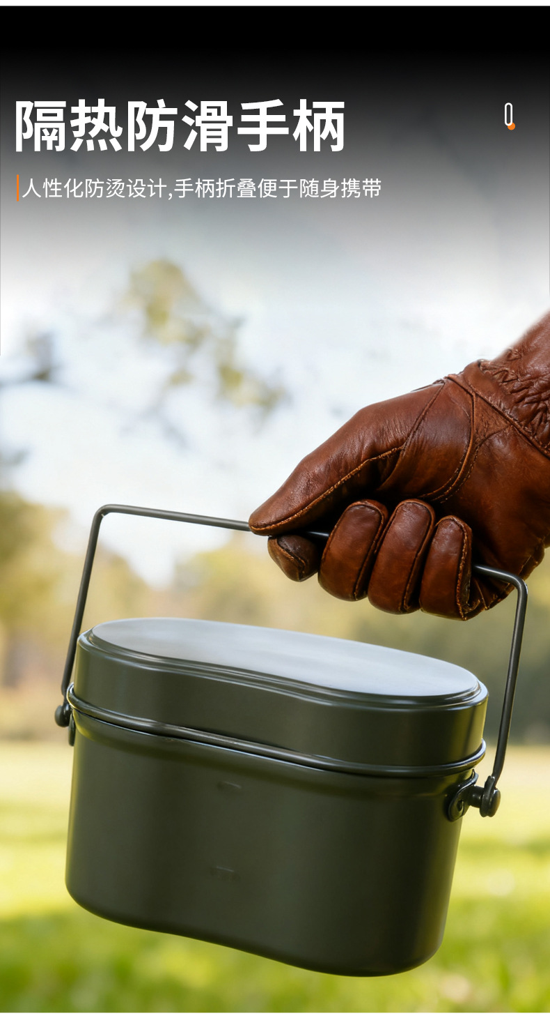 户外铝制饭盒套装德式单兵饭盒行军野营便当双层便携带手柄便当盒