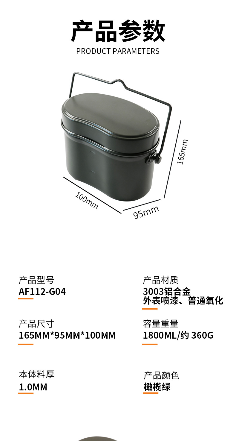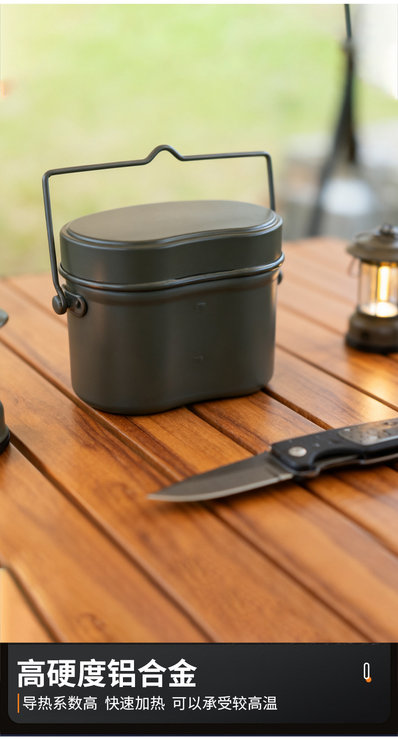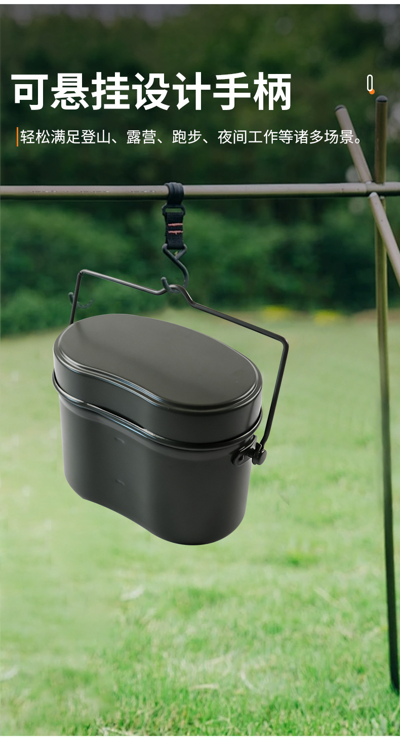 户外铝制饭盒套装德式单兵饭盒行军野营便当双层便携带手柄便当盒