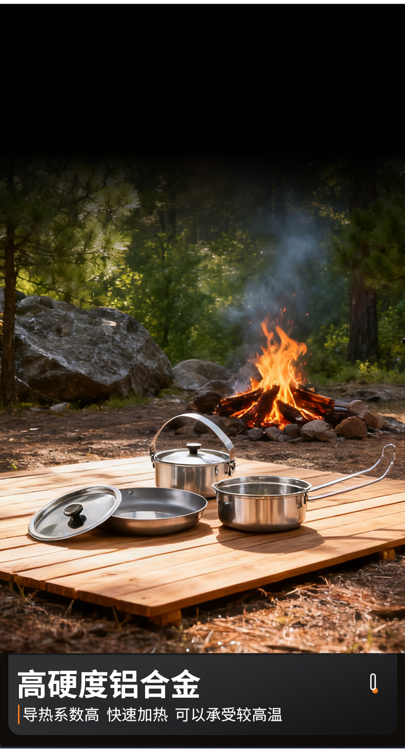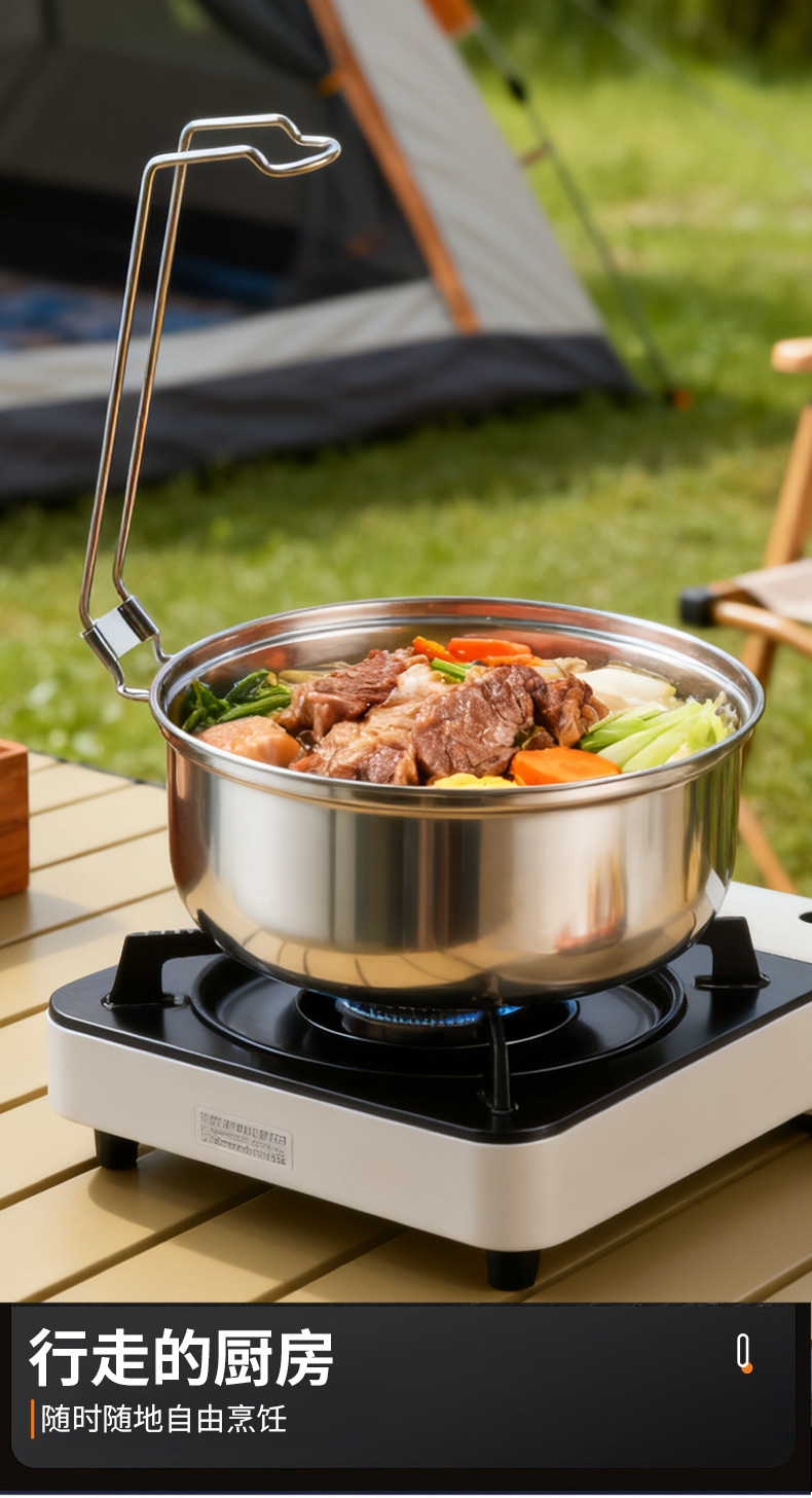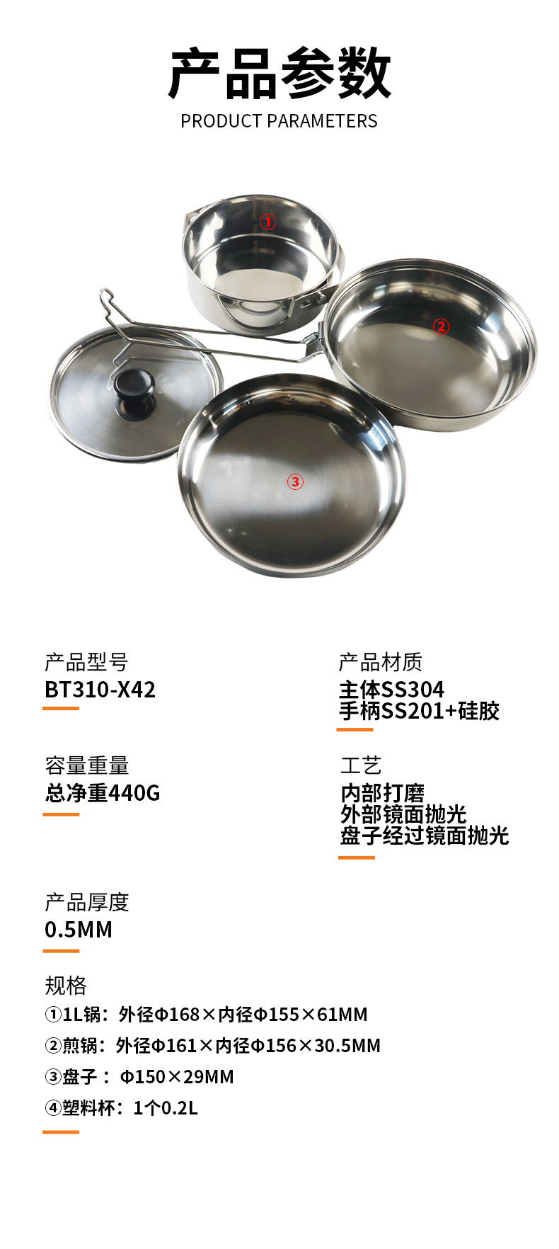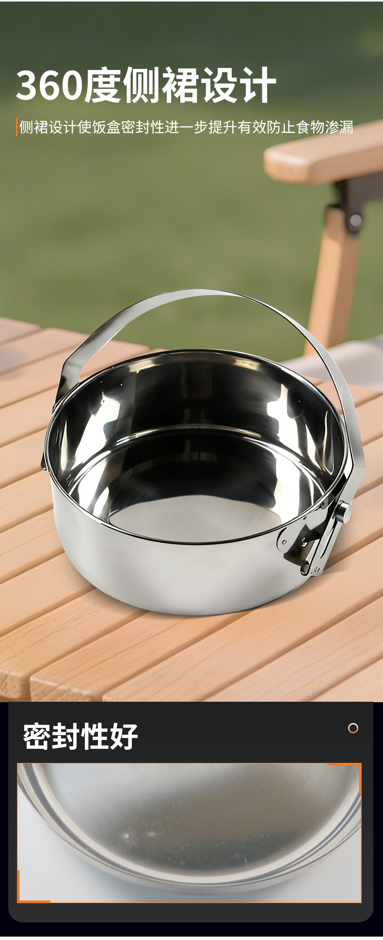跨境不锈钢圆形饭盒套装山地野营便携式美式分体式锅具户外炊具