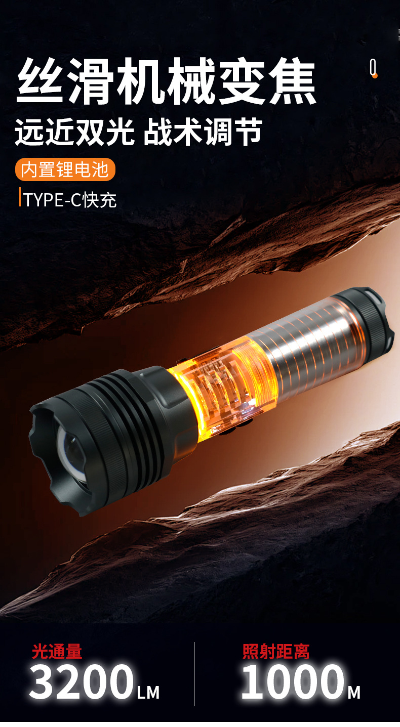 - 颜色:A555黑色/灯头伸缩变焦/充电线+挂绳